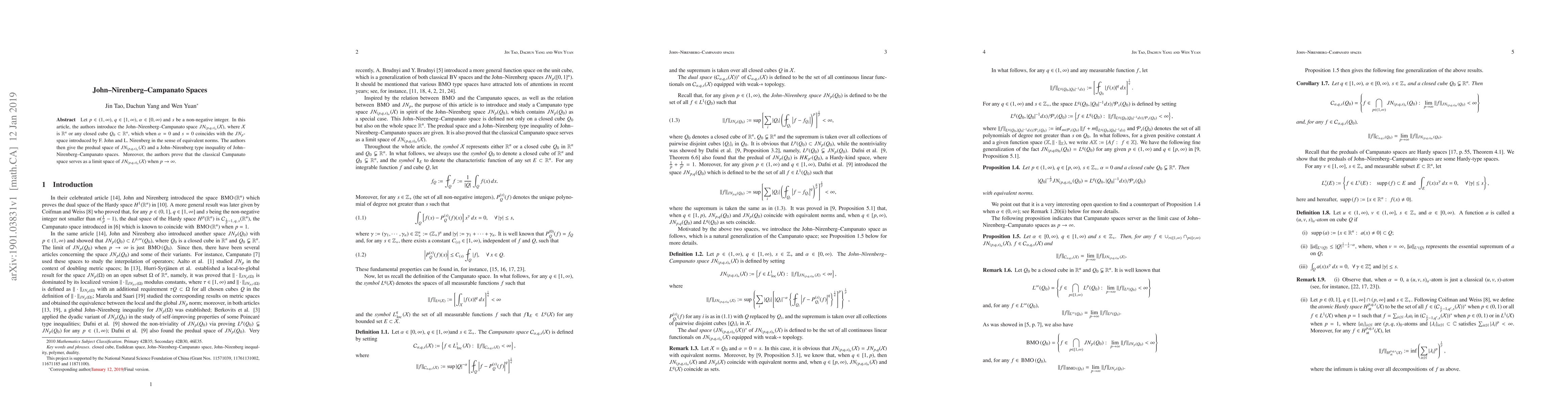 Let $p\in (1,\infty)$, $q\in[1,\infty)$, $\alpha\in [0,\infty)$ and $s$ be a non-negative integer. In this article, the authors introduce the John--Nirenberg-Campanato space $JN_{(p,q,s)_\alpha}(\mathcal{X})$, where $\mathcal{X}$ is ${\mathbb R}^n$ or any closed cube $Q_0\subsetneqq{\mathbb R}^n$, which when $\alpha=0$ and $s=0$ coincides with the $JN_p$-space introduced by F. John and L. Nirenberg in the sense of equivalent norms. The authors then give the predual space of $JN_{(p,q,s)_\alpha}(\mathcal{X})$ and a John-Nirenberg type inequality of John--Nirenberg-Campanato spaces. Moreover, the authors prove that the classical Campanato space serves as a limit space of $JN_{(p,q,s)_\alpha}(\mathcal{X})$ when $p\to \infty$.