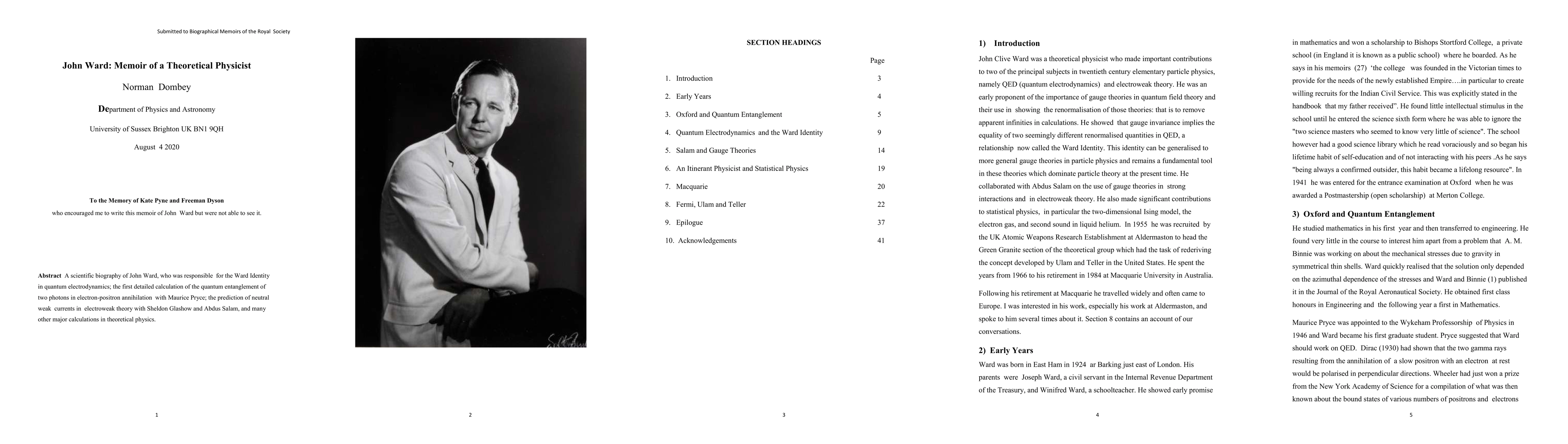 A scientific biography of John Ward, who was responsible for the Ward Identity in quantum electrodynamics; the first detailed calculation of the quantum entanglement of two photons in electron-positron annihilation with Maurice Pryce; the prediction of neutral weak currents in electroweak theory with Sheldon Glashow and Abdus Salam, and many other major calculations in theoretical physics.