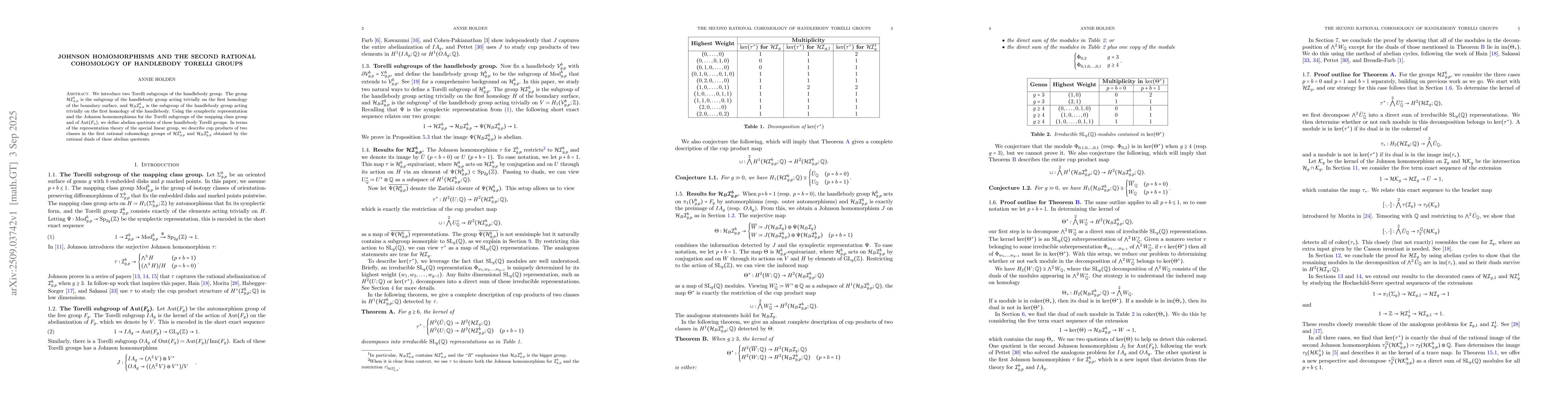 We introduce two Torelli subgroups of the handlebody group. The group $HI_{g,p}^b$ is the subgroup of the handlebody group acting trivially on the first homology of the boundary surface, and $H_B I_{g,p}^b$ is the subgroup of the handlebody group acting trivially on the first homology of the handlebody. Using the symplectic representation and the Johnson homomorphisms for the Torelli subgroups of the mapping class group and of $\operatorname{Aut}(F_g)$, we define abelian quotients of these handlebody Torelli groups. In terms of the representation theory of the special linear group, we describe cup products of two classes in the first rational cohomology groups of $HI_{g,p}^b$ and $H_B I_{g,p}^b$ obtained by the rational duals of these abelian quotients.