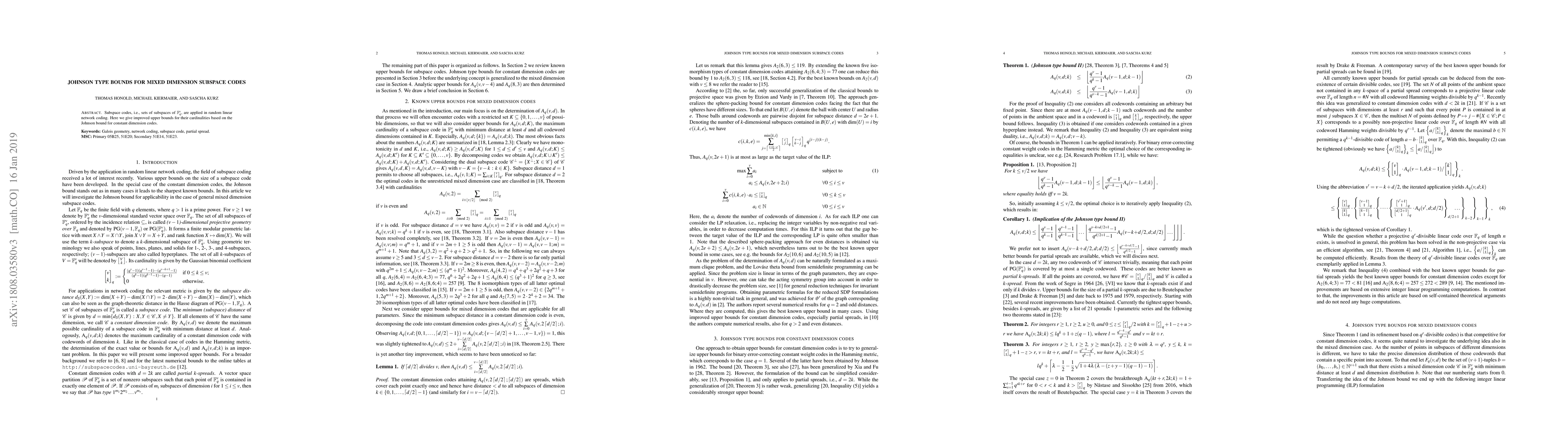 Summary: This paper presents enhanced upper bounds for the cardinalities of mixed dimension subspace codes used in random linear network coding, leveraging the Johnson bound traditionally applied to constant dimension codes.