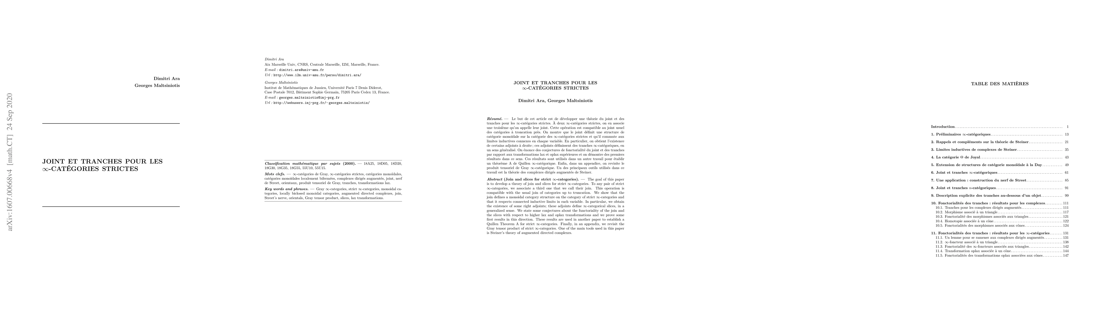 This paper develops a theory of join and slices for strict $\infty$-categories, introducing an operation that combines any two such categories into a third, which respects limits and defines a monoidal structure. It also conjectures on the functoriality of these operations and proves initial results, aiding in establishing a Quillen Theorem A for strict $\infty$-categories.