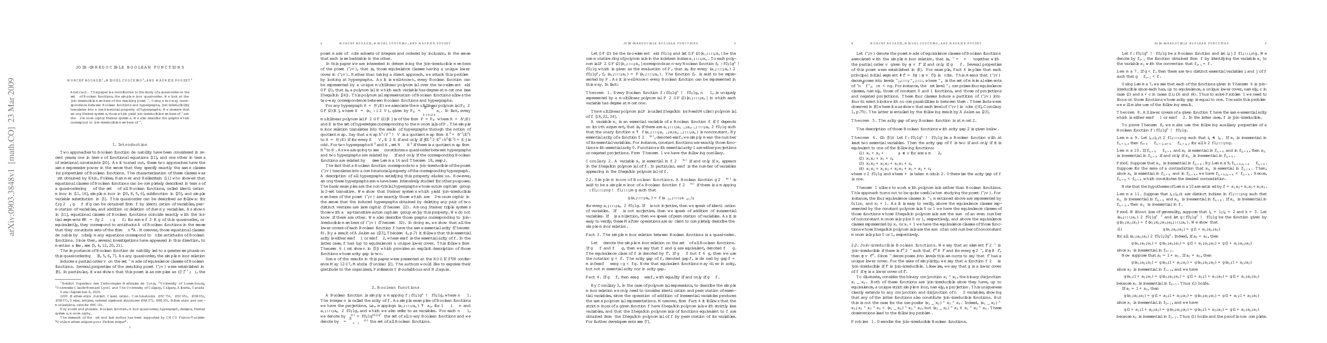 This paper investigates the join-irreducible Boolean functions under the simple minor quasi-order, revealing a combinatorial property in hypergraphs and identifying -2-monomorphic Steiner systems as those yielding such functions. The study also describes the graphs corresponding to these join-irreducible members.