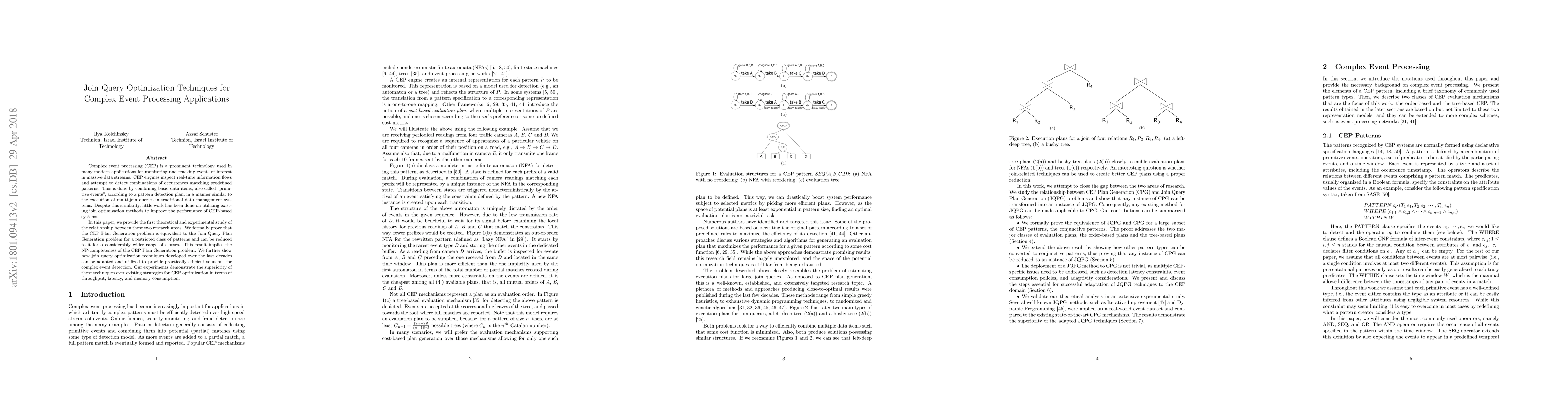 This paper investigates the application of join query optimization techniques to enhance complex event processing (CEP) systems, proving the equivalence between CEP plan generation and join query plan generation under certain conditions. Experiments show that these adapted techniques outperform existing CEP optimization strategies in throughput, latency, and memory usage.