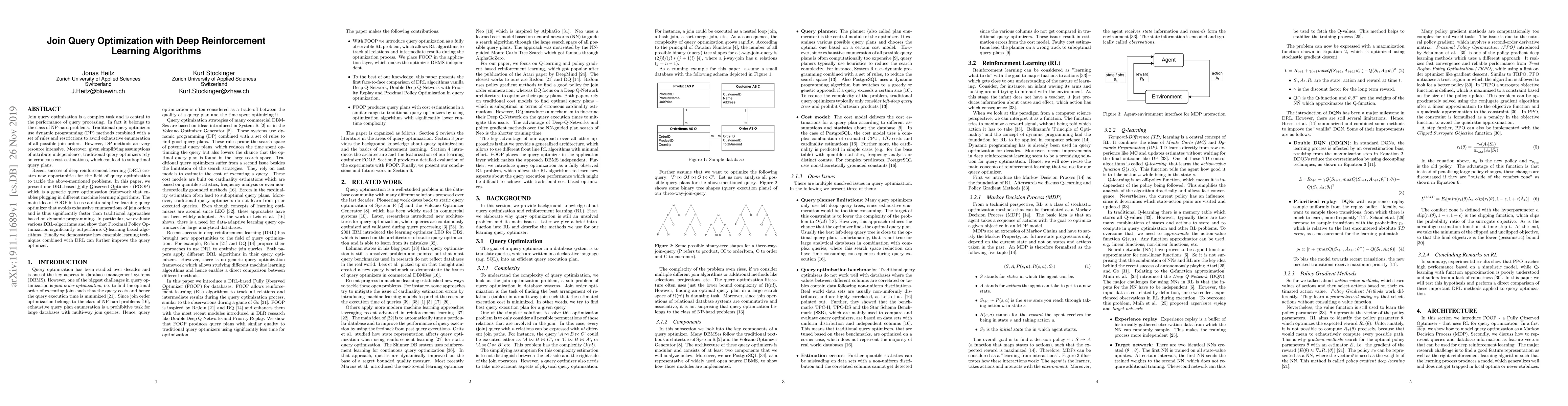 This work stands out by applying DRL techniques to query optimization, specifically using PPO, which demonstrates superior performance compared to Q-learning and traditional DP methods. The introduction of ensemble learning techniques further enhances the robustness and stability of DRL-based query optimization.