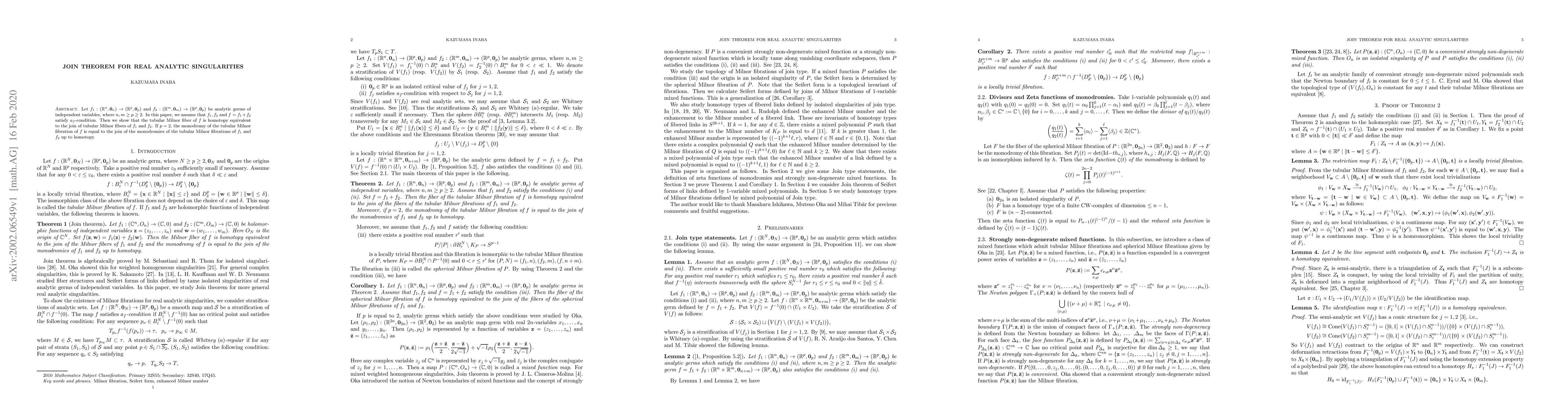 The paper establishes a key connection between real analytic singularities, specifically showing that the tubular Milnor fiber of their sum is homotopy equivalent to the join of their individual fibers.