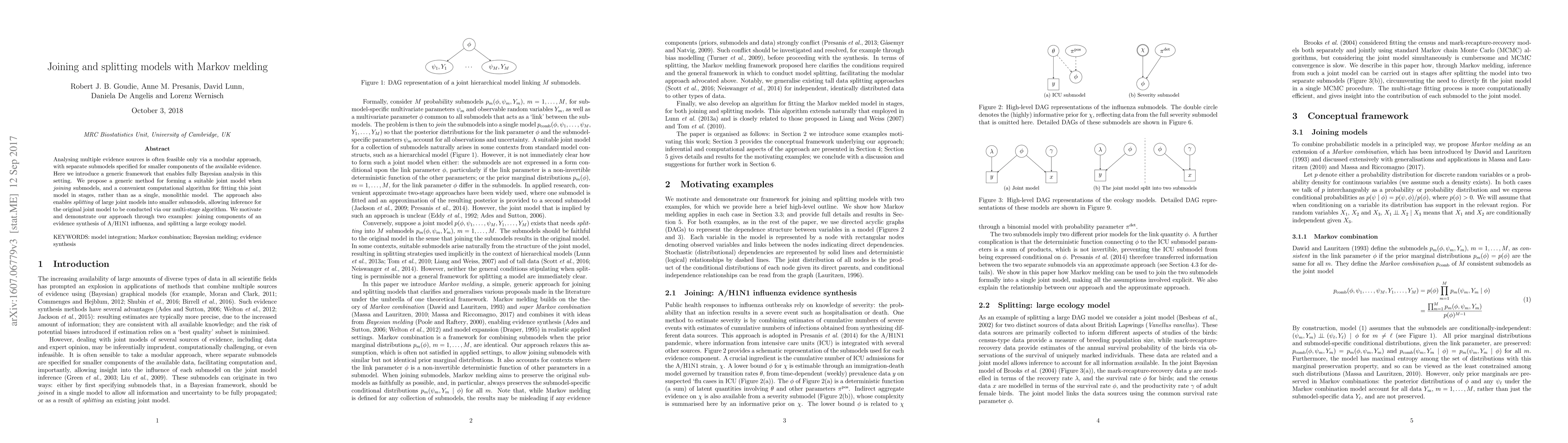 This paper introduces a Bayesian framework for modular analysis of multiple evidence sources by joining and splitting submodels through Markov melding. The proposed method allows for a flexible, multi-stage approach to fitting joint models and facilitates inference on large joint models by decomposing them into smaller, manageable submodels.