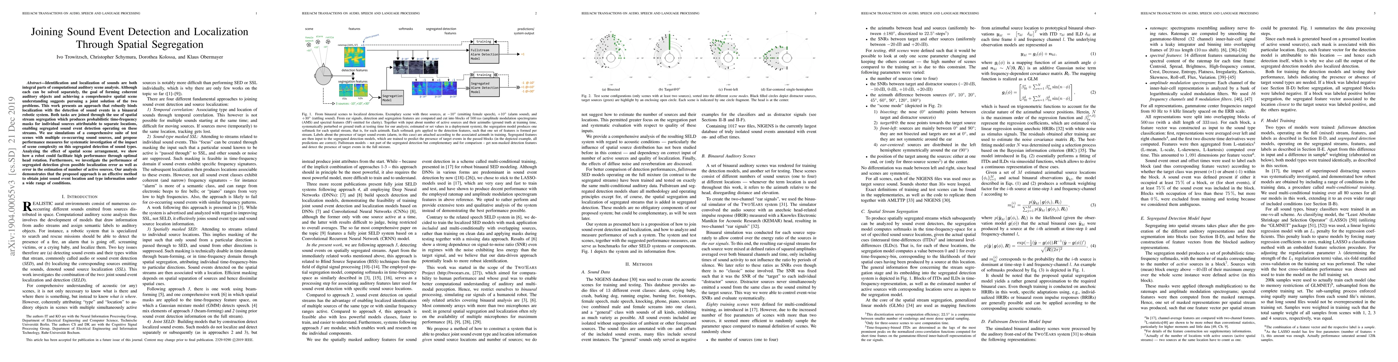 This paper proposes a method for jointly detecting and localizing sound events in a binaural robotic system using spatial stream segregation, which creates probabilistic time-frequency masks for individual sound sources. The approach demonstrates effective performance under varying scene complexities and localization errors.