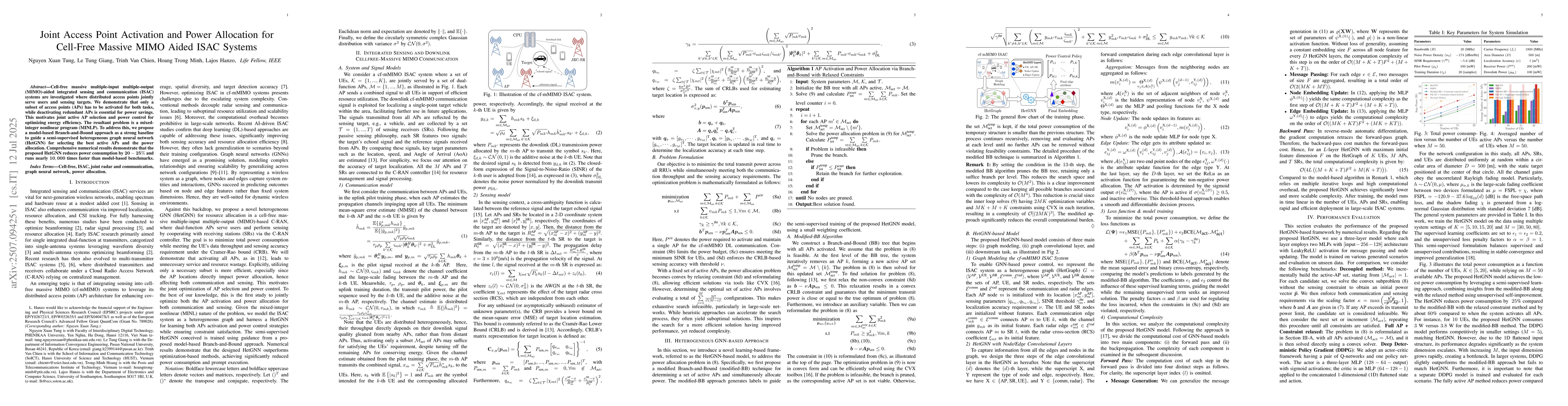 A semi-supervised HetGNN is proposed to efficiently activate APs and power allocation for cell-free ISAC networks