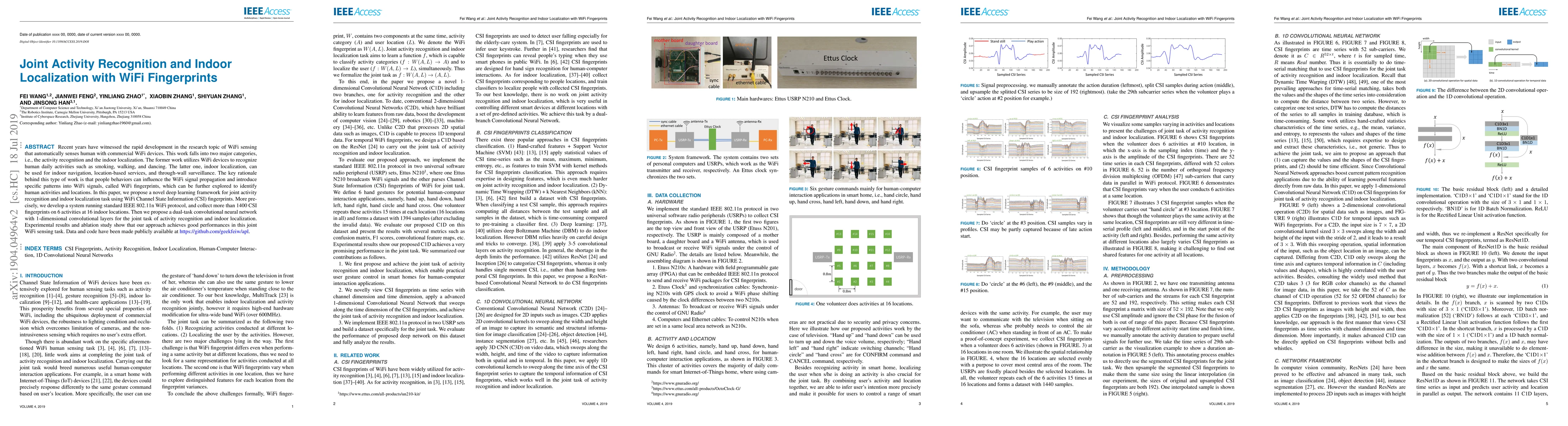 Recent years have witnessed the rapid development in the research topic of WiFi sensing that automatically senses human with commercial WiFi devices. This work falls into two major categories, i.e., the activity recognition and the indoor localization. The former work utilizes WiFi devices to recognize human daily activities such as smoking, walking, and dancing. The latter one, indoor localization, can be used for indoor navigation, location-based services, and through-wall surveillance. The key rationale behind this type of work is that people behaviors can influence the WiFi signal propagation and introduce specific patterns into WiFi signals, called WiFi fingerprints, which can be further explored to identify human activities and locations. In this paper, we propose a novel deep learning framework for joint activity recognition and indoor localization task using WiFi Channel State Information~(CSI) fingerprints. More precisely, we develop a system running standard IEEE 802.11n WiFi protocol, and collect more than 1400 CSI fingerprints on 6 activities at 16 indoor locations. Then we propose a dual-task convolutional neural network with 1-dimensional convolutional layers for the joint task of activity recognition and indoor localization. Experimental results and ablation study show that our approach achieves good performances in this joint WiFi sensing task. Data and code have been made publicly available at https://github.com/geekfeiw/apl.