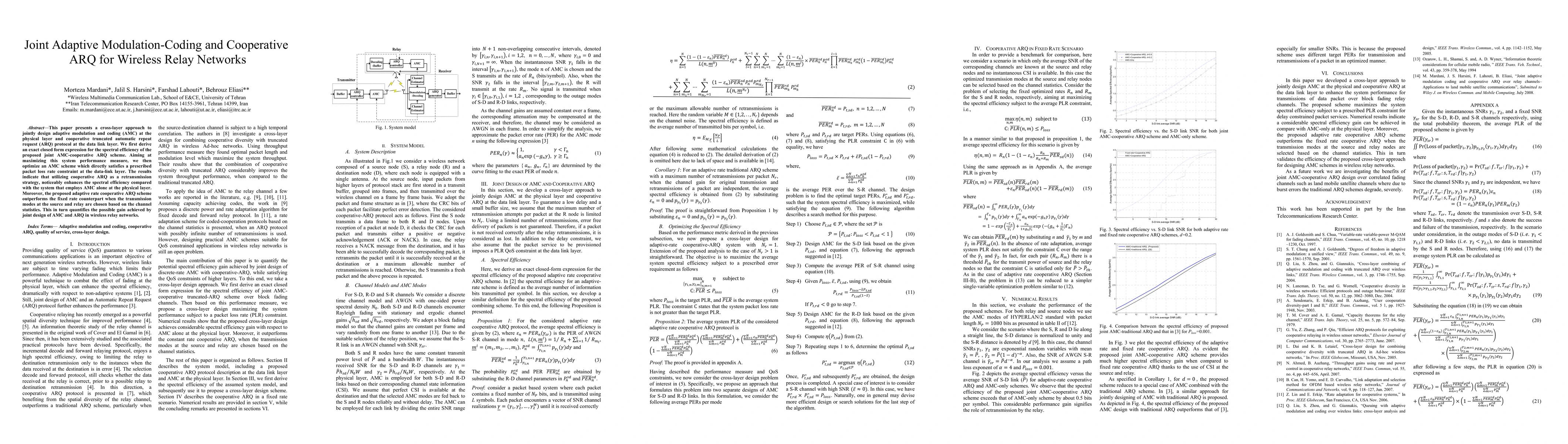 This paper proposes a joint adaptive modulation-coding and cooperative ARQ scheme for wireless relay networks, optimizing AMC to meet packet loss rate constraints and showing significant spectral efficiency gains over AMC alone. The adaptive rate cooperative ARQ further enhances performance compared to fixed rate ARQ, demonstrating the benefits of integrated AMC and ARQ design.