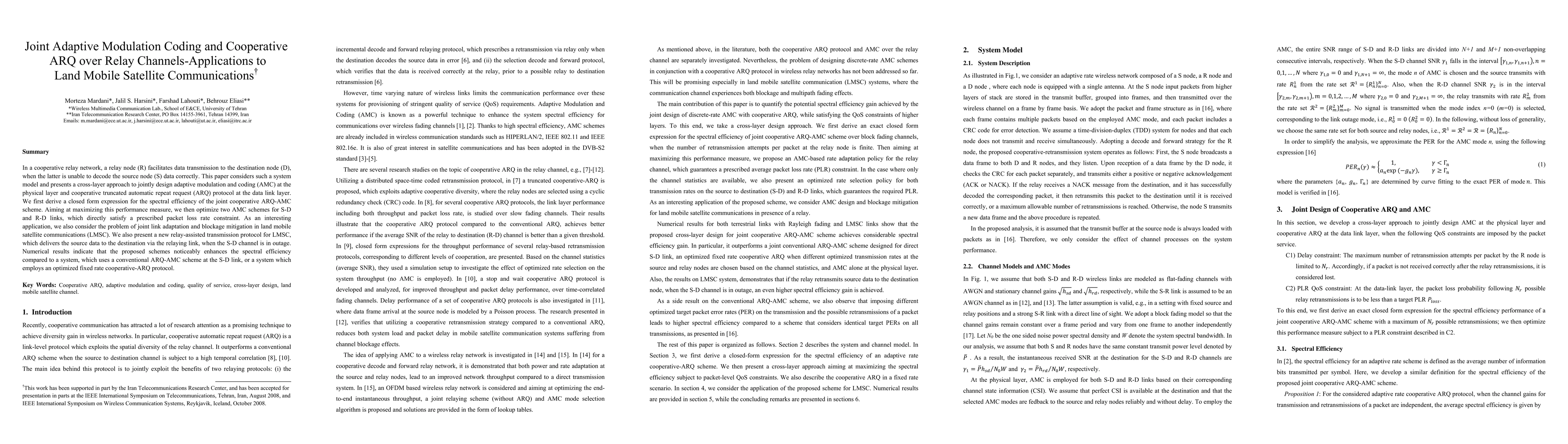 A comprehensive study was conducted to investigate the performance of joint cooperative ARQ-AMC schemes in satellite communication systems.