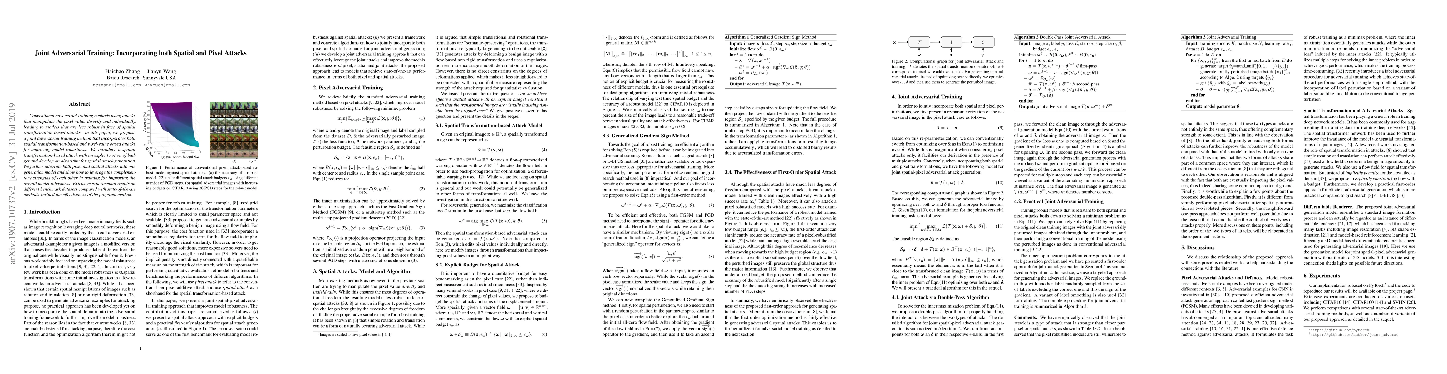 This paper proposes a joint adversarial training method that combines spatial transformation-based and pixel-value attacks to enhance model robustness against various adversarial threats. The method integrates both types of attacks into a single training model, leveraging their complementary strengths to improve overall model resilience, as demonstrated by superior performance on benchmark datasets.