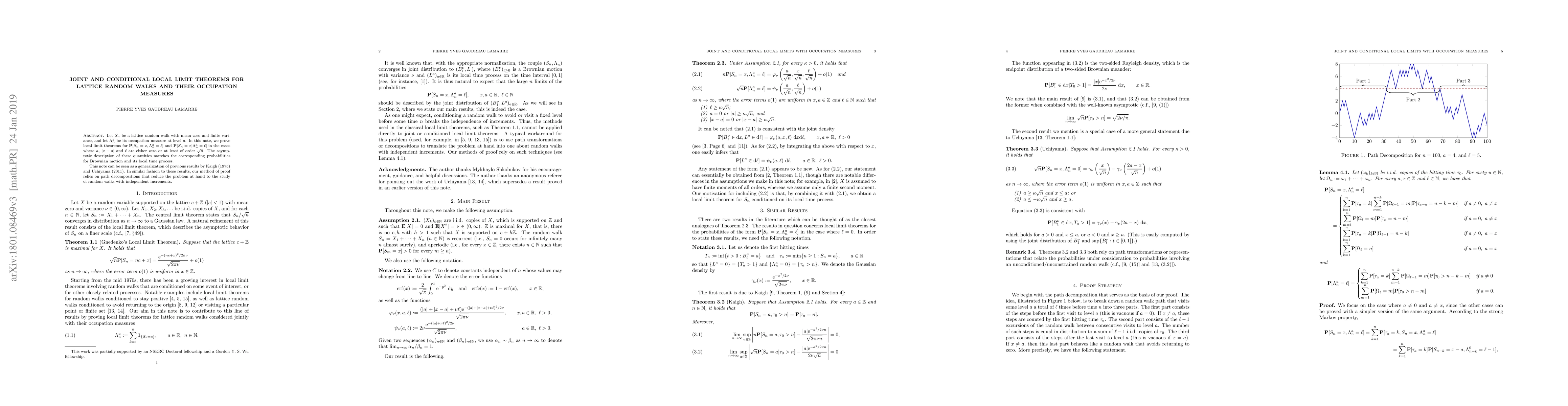 This paper proves local limit theorems for lattice random walks and their occupation measures, providing a generalization of previous results and an asymptotic description matching Brownian motion probabilities.