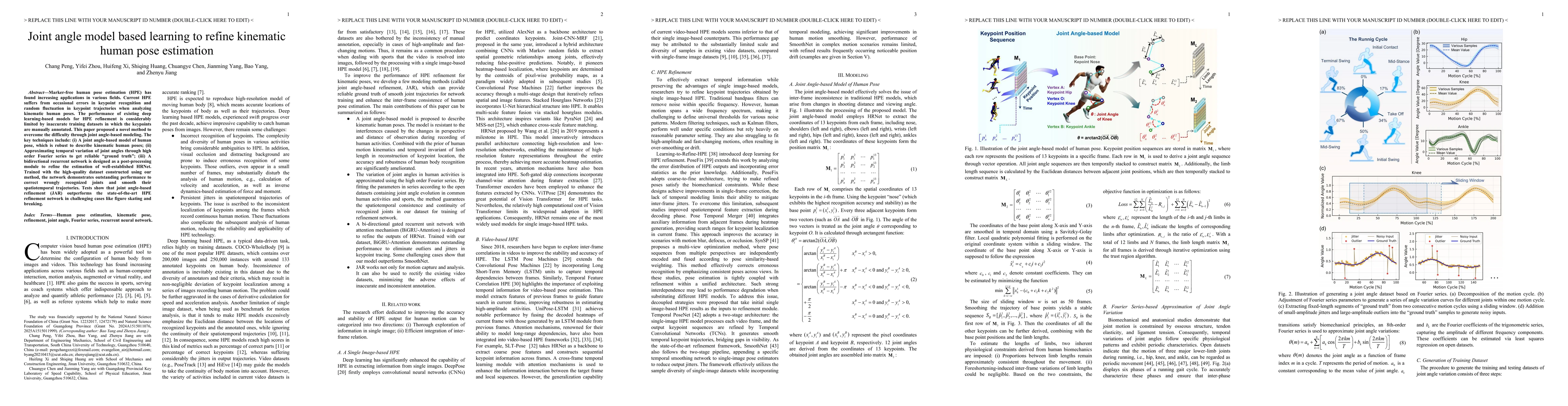 Marker-free human pose estimation (HPE) has found increasing applications in various fields. Current HPE suffers from occasional errors in keypoint recognition and random fluctuation in keypoint trajectories when analyzing kinematic human poses. The performance of existing deep learning-based models for HPE refinement is considerably limited by inaccurate training datasets in which the keypoints are manually annotated. This paper proposed a novel method to overcome the difficulty through joint angle-based modeling. The key techniques include: (i) A joint angle-based model of human pose, which is robust to describe kinematic human poses; (ii) Approximating temporal variation of joint angles through high order Fourier series to get reliable "ground truth"; (iii) A bidirectional recurrent network is designed as a post-processing module to refine the estimation of well-established HRNet. Trained with the high-quality dataset constructed using our method, the network demonstrates outstanding performance to correct wrongly recognized joints and smooth their spatiotemporal trajectories. Tests show that joint angle-based refinement (JAR) outperforms the state-of-the-art HPE refinement network in challenging cases like figure skating and breaking.