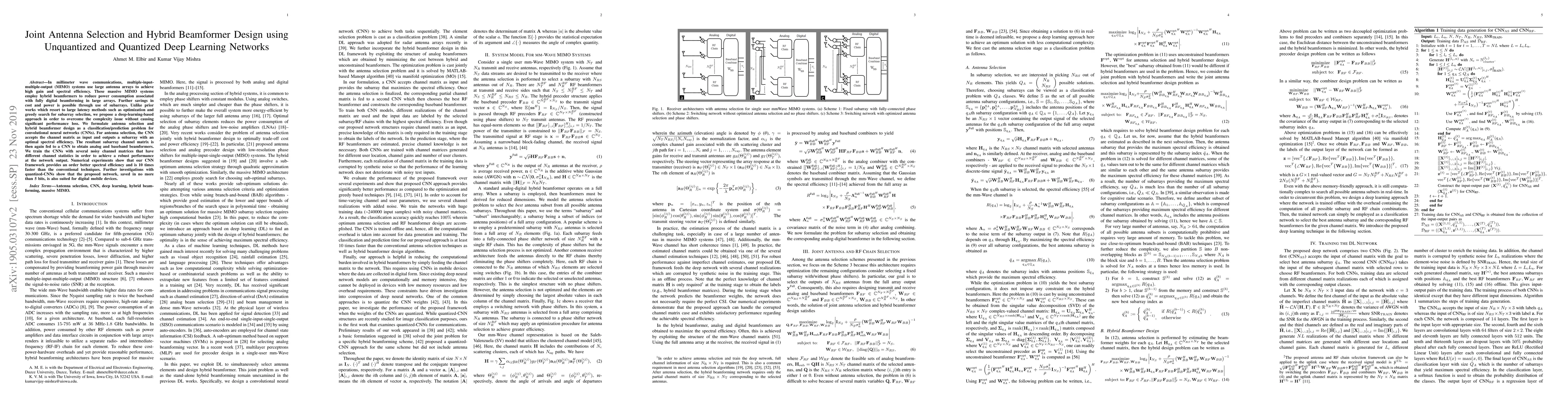 This paper proposes a deep-learning-based method for joint antenna selection and hybrid beamformer design in millimeter-wave MIMO systems, achieving higher spectral efficiency and lower computational complexity compared to traditional methods. The approach uses convolutional neural networks to optimize subarray selection and beamformer design, demonstrating significant performance gains and faster processing speeds.