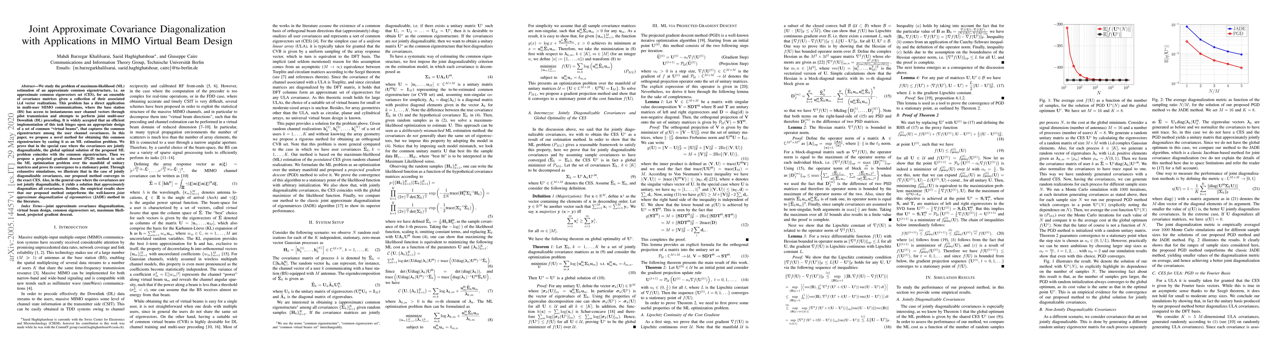We study the problem of maximum-likelihood (ML) estimation of an approximate common eigenstructure, i.e. an approximate common eigenvectors set (CES), for an ensemble of covariance matrices given a collection of their associated i.i.d vector realizations. This problem has a direct application in multi-user MIMO communications, where the base station (BS) has access to instantaneous user channel vectors through pilot transmission and attempts to perform joint multi-user Downlink (DL) precoding. It is widely accepted that an efficient implementation of this task hinges upon an appropriate design of a set of common "virtual beams", that captures the common eigenstructure among the user channel covariances. In this paper, we propose a novel method for obtaining this common eigenstructure by casting it as an ML estimation problem. We prove that in the special case where the covariances are jointly diagonalizable, the global optimal solution of the proposed ML problem coincides with the common eigenstructure. Then we propose a projected gradient descent (PGD) method to solve the ML optimization problem over the manifold of unitary matrices and prove its convergence to a stationary point. Through exhaustive simulations, we illustrate that in the case of jointly diagonalizable covariances, our proposed method converges to the exact CES. Also, in the general case where the covariances are not jointly diagonalizable, it yields a solution that approximately diagonalizes all covariances. Besides, the empirical results show that our proposed method outperforms the well-known joint approximate diagonalization of eigenmatrices (JADE) method in the literature.