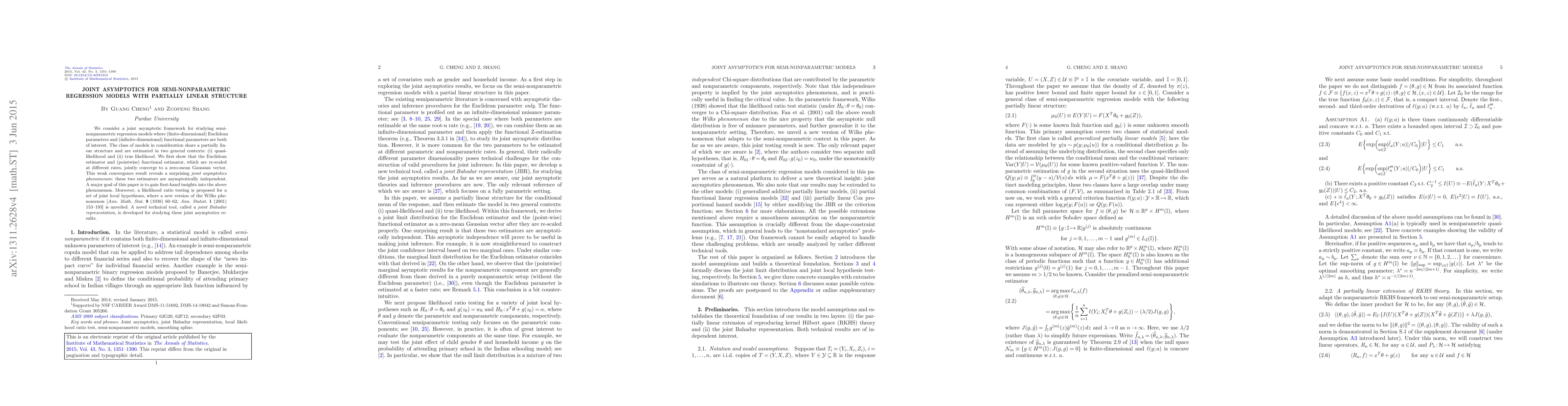 This paper explores joint asymptotics for semi-nonparametric regression models with a partially linear structure, showing that Euclidean and functional estimators converge to a zero-mean Gaussian vector and are asymptotically independent. It introduces a joint Bahadur representation and proposes a likelihood ratio test, revealing a new version of the Wilks phenomenon.