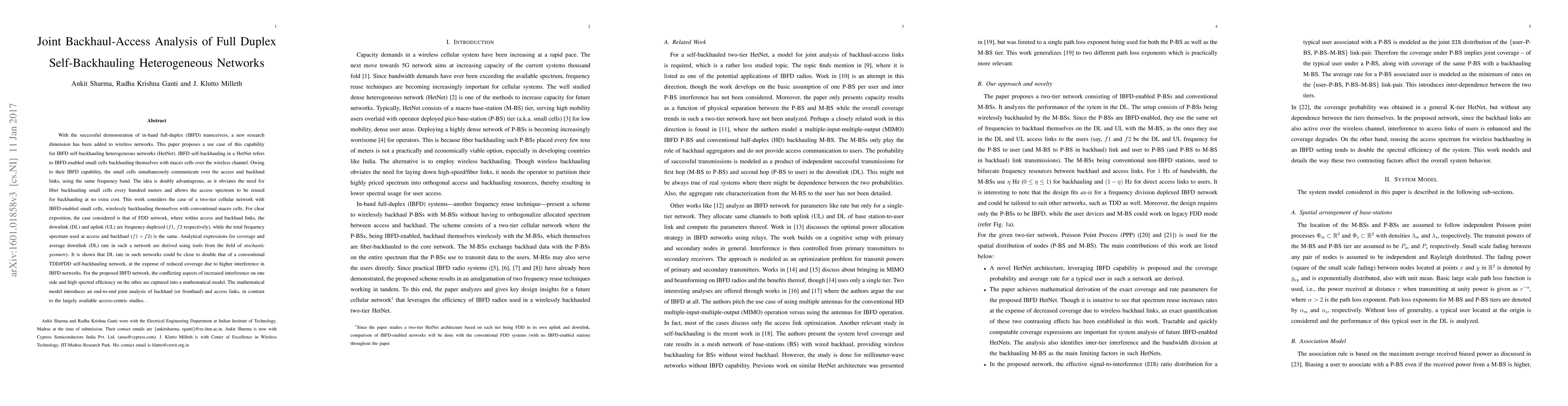 With the successful demonstration of in-band full-duplex (IBFD) transceivers, a new research dimension has been added to wireless networks. This paper proposes an interesting use case of this capability for IBFD self-backhauling heterogeneous networks (HetNet). IBFD self-backhauling in a HetNet refers to IBFD-enabled small cells backhauling themselves with macro cells over the wireless channel. Owing to their IBFD capability, the small cells simultaneously communicate over the access and backhaul links, using the same frequency band. The idea is doubly advantageous, as it obviates the need for fiber backhauling small cells every hundred meters and allows the access spectrum to be reused for backhauling at no extra cost. This work considers the case of a two-tier cellular network with IBFD-enabled small cells, wirelessly backhauling themselves with conventional macro cells. For clear exposition, the case considered is that of FDD network, where within access and backhaul links, the downlink (DL) and uplink (UL) are frequency duplexed ($f1$, $f2$ respectively), while the total frequency spectrum used at access and backhaul ($f1+f2$) is the same. Analytical expressions for coverage and average downlink (DL) rate in such a network are derived using tools from the field of stochastic geometry. It is shown that DL rate in such networks could be close to double that of a conventional TDD/FDD self-backhauling network, at the expense of reduced coverage due to higher interference in IBFD networks. For the proposed IBFD network, the conflicting aspects of increased interference on one side and high spectral efficiency on the other are captured into a mathematical model. The mathematical model introduces an end-to-end joint analysis of backhaul (or fronthaul) and access links, in contrast to the largely available access-centric studies.