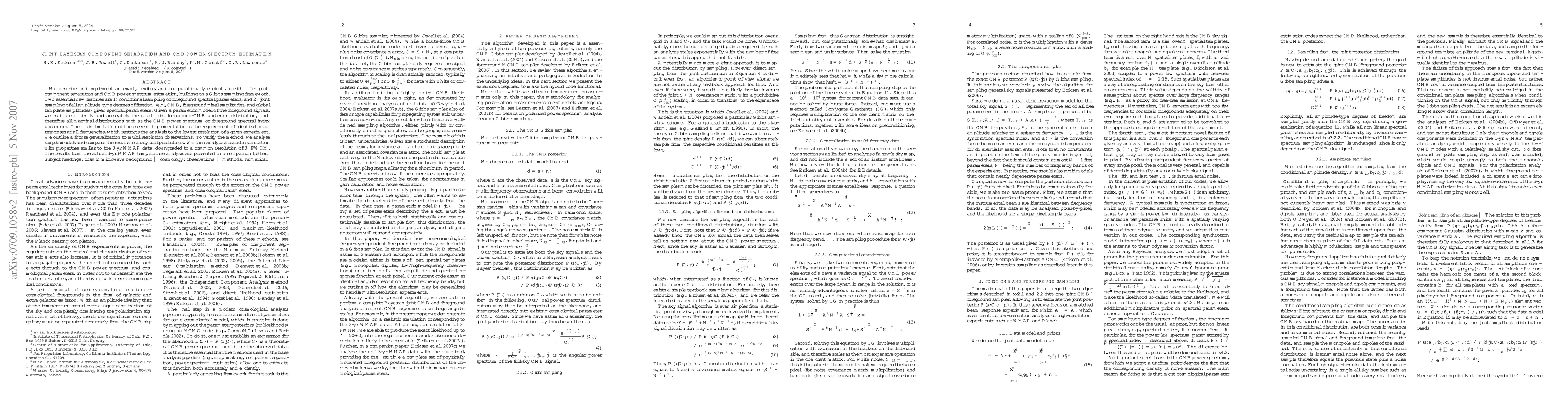 This paper introduces a new algorithm for joint component separation and CMB power spectrum estimation using a Gibbs sampling framework, featuring conditional sampling and joint sampling of all amplitude-type degrees of freedom. The method estimates the exact joint foreground-CMB posterior distribution, but is currently limited to identical beam responses across all frequencies.
