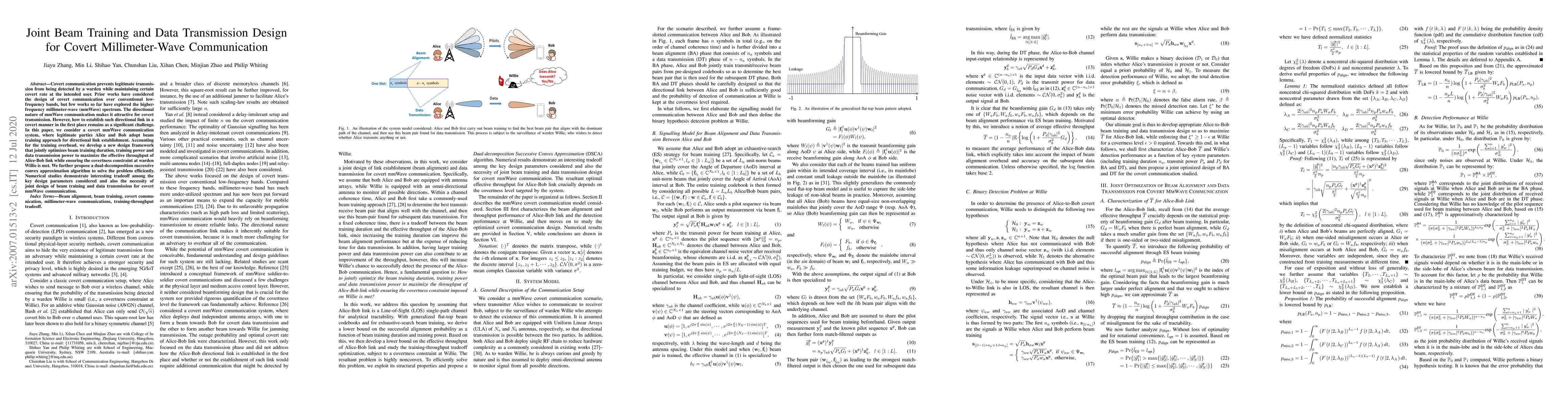 This paper proposes a framework for covert millimeter-wave communication, optimizing joint beam training and data transmission to maximize throughput while ensuring covertness from detection by a warden. A dual-decomposition algorithm efficiently solves the optimization problem, revealing the trade-offs between beam training and data transmission parameters.