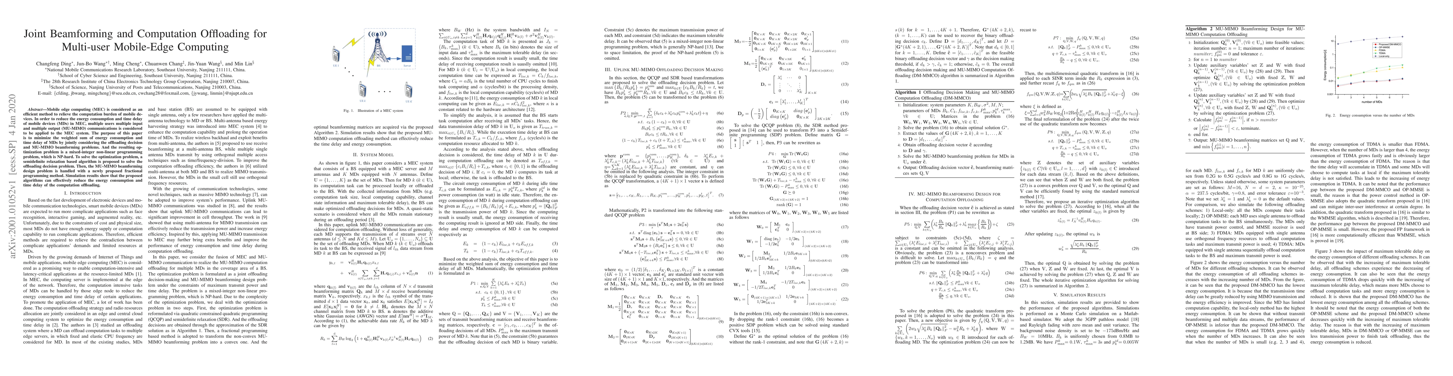 This paper proposes a joint optimization method for energy consumption and time delay in mobile-edge computing, using semidefinite relaxation and fractional programming to minimize these metrics.