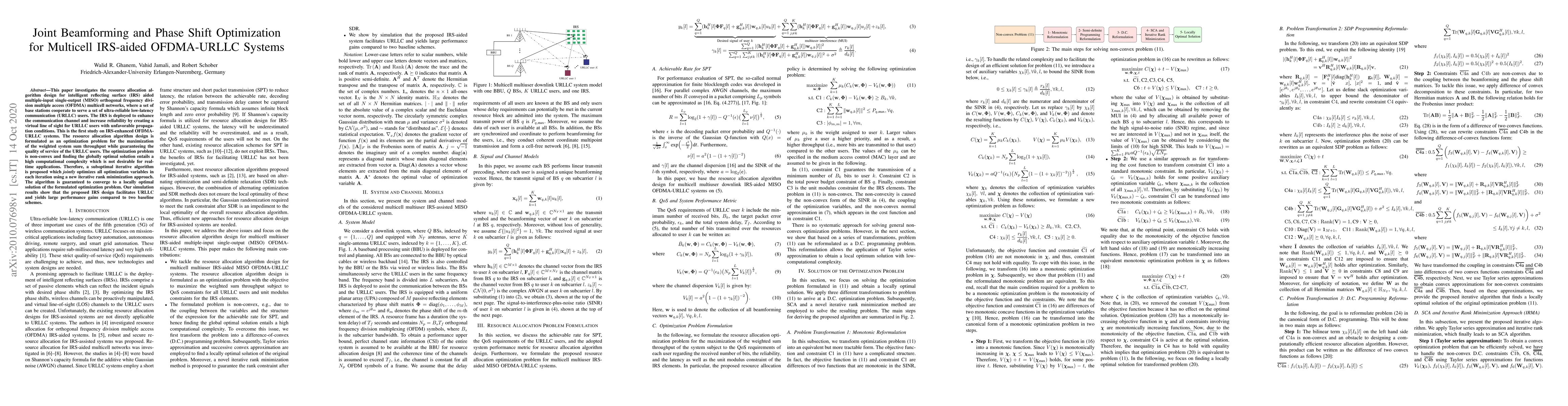 This paper proposes a joint beamforming and phase shift optimization algorithm for IRS-aided OFDMA-URLLC systems to maximize weighted system sum throughput while ensuring service quality. A suboptimal iterative algorithm is developed to solve the non-convex optimization problem, achieving significant performance gains over baseline schemes.