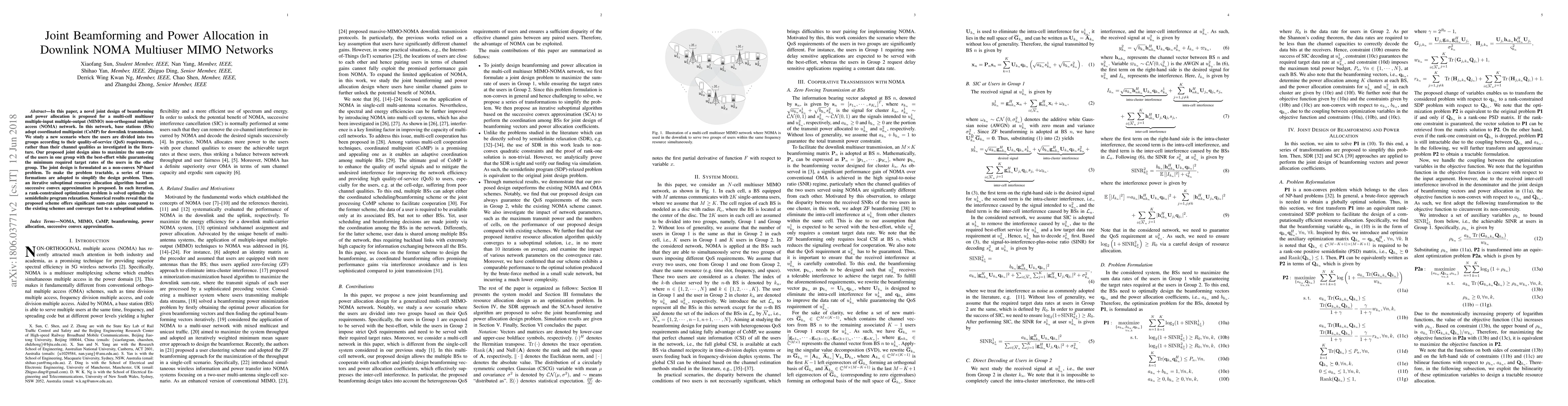 In this paper, a novel joint design of beamforming and power allocation is proposed for a multi-cell multiuser multiple-input multiple-output (MIMO) non-orthogonal multiple access (NOMA) network. In this network, base stations (BSs) adopt coordinated multipoint (CoMP) for downlink transmission. We study a new scenario where the users are divided into two groups according to their quality-of-service (QoS) requirements, rather than their channel qualities as investigated in the literature. Our proposed joint design aims to maximize the sum-rate of the users in one group with the best-effort while guaranteeing the minimum required target rates of the users in the other group. The joint design is formulated as a non-convex NP-hard problem. To make the problem tractable, a series of transformations are adopted to simplify the design problem. Then, an iterative suboptimal resource allocation algorithm based on successive convex approximation is proposed. In each iteration, a rank-constrained optimization problem is solved optimally via semidefinite program relaxation. Numerical results reveal that the proposed scheme offers significant sum-rate gains compared to the existing schemes and converges fast to a suboptimal solution.
