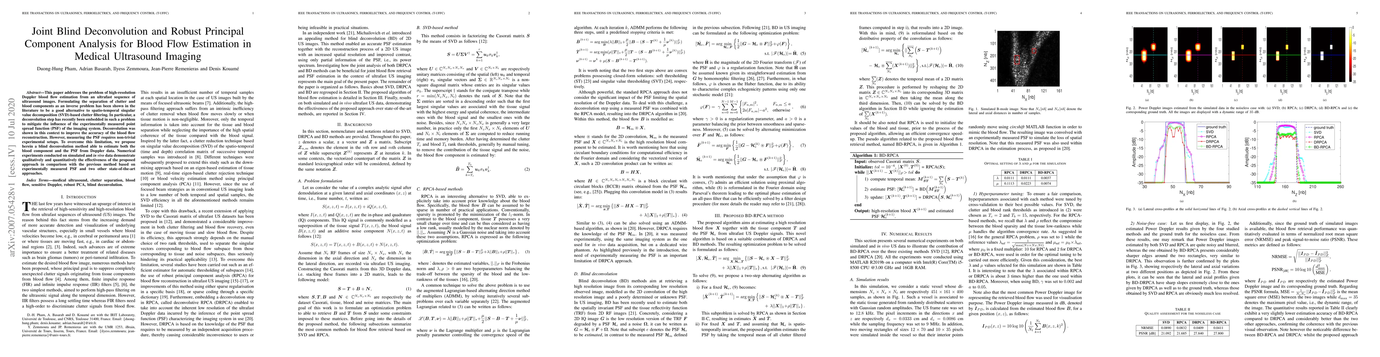 A new method for blind deconvolution and robust principal component analysis is proposed to improve blood flow estimation in medical ultrasound imaging, showing effectiveness in simulated and in vivo data.