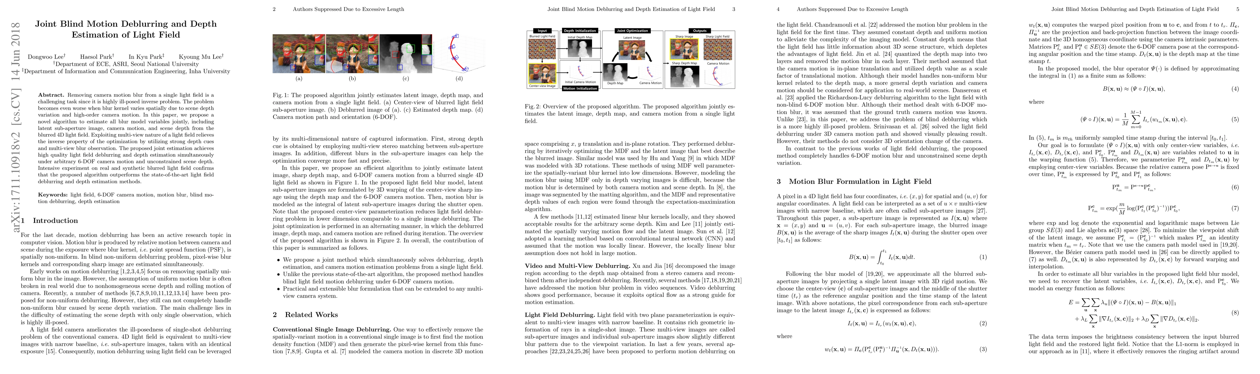 A new algorithm jointly estimates blur model variables from a blurred light field, achieving high-quality deblurring and depth estimation simultaneously under arbitrary camera motion and unconstrained scene depth.