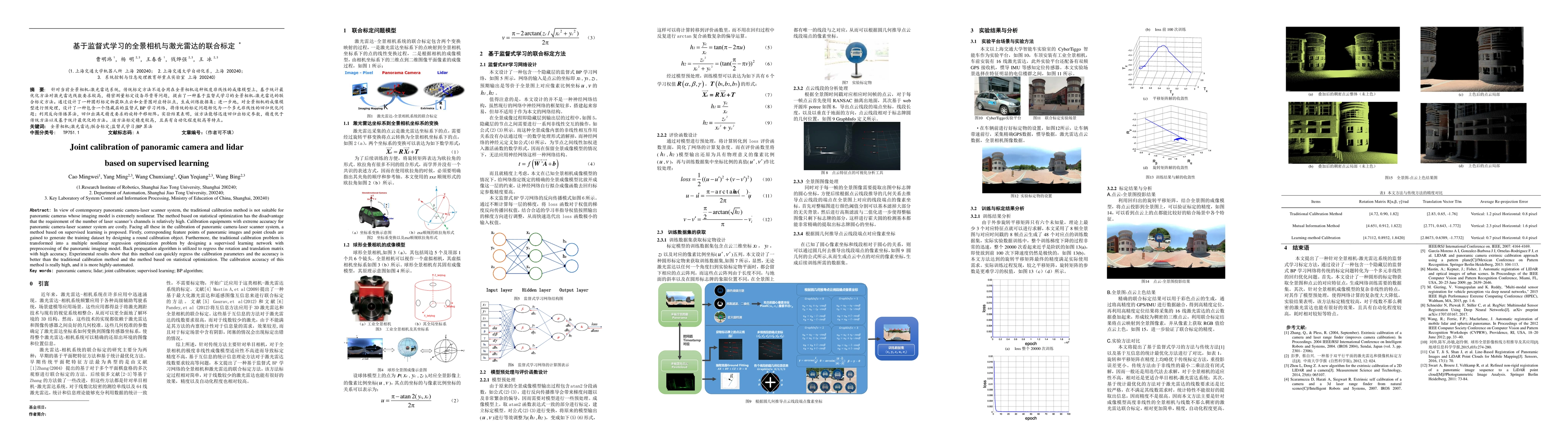 This paper proposes a supervised learning method for calibrating panoramic cameras and LiDAR systems, transforming the calibration into a multiple nonlinear regression problem using a trained neural network. The method demonstrates higher accuracy and automation compared to traditional and statistical optimization methods.
