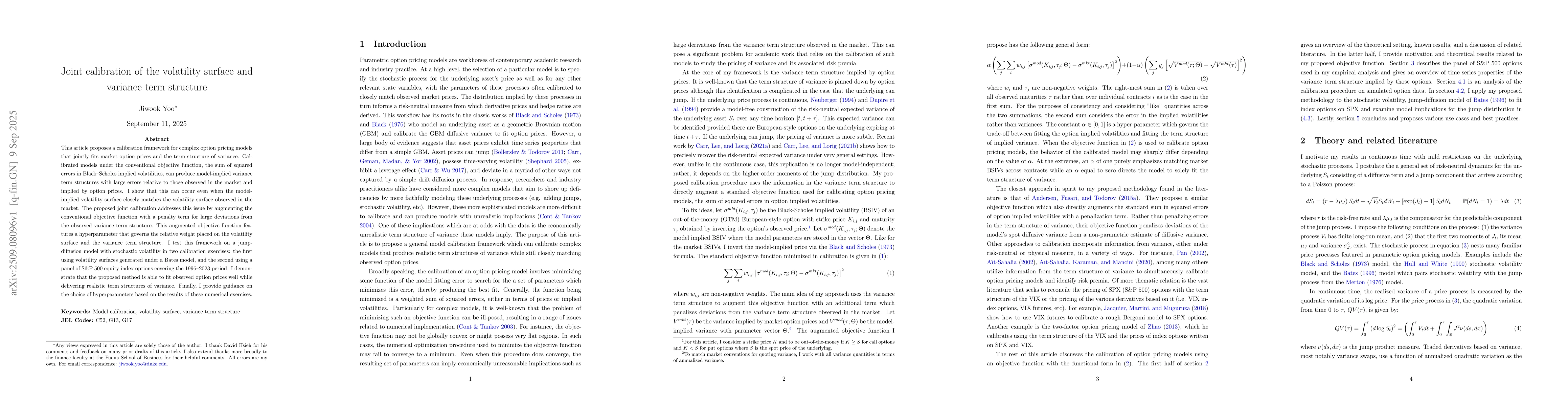 Development of an objective function that jointly optimizes errors in implied volatility surfaces and variance term structures, enabling more accurate financial model calibration.
