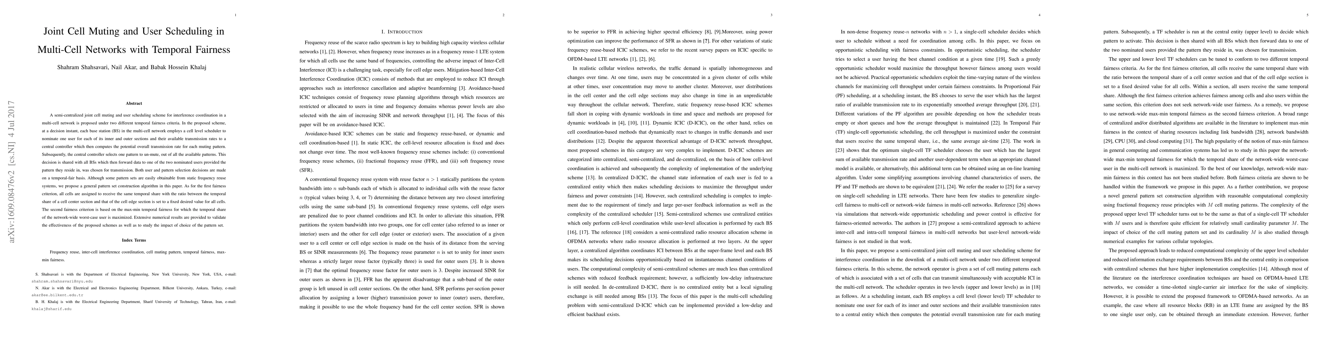 A new scheme is proposed for managing interference in multi-cell networks with fairness considerations, allowing cells to mute unwanted signals and users to share time slots.
