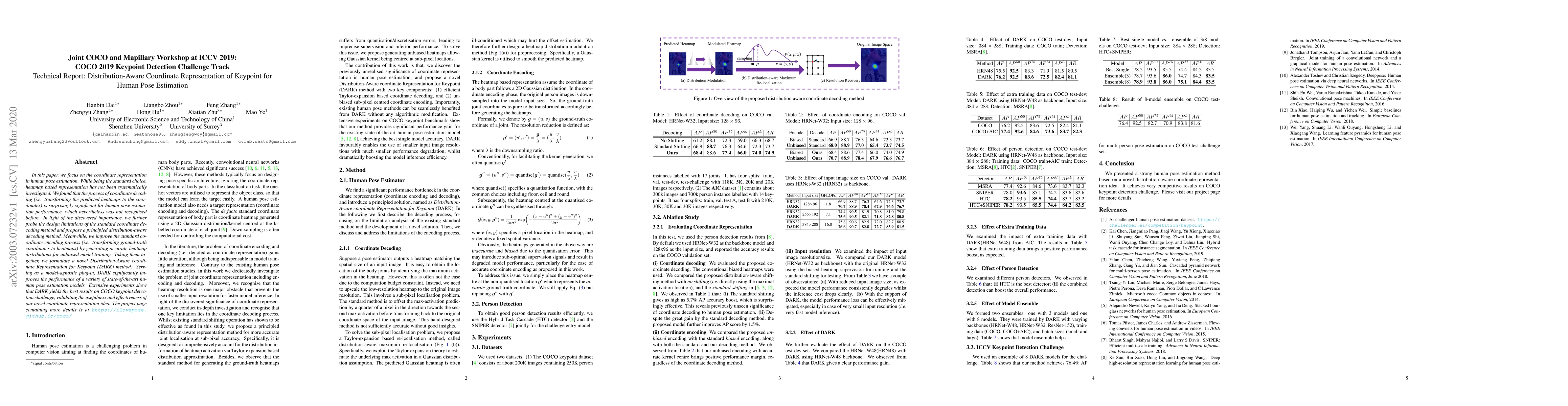 This paper introduces a Distribution-Aware Coordinate Representation for Keypoint (DARK) method to enhance human pose estimation by improving both coordinate decoding and encoding processes. DARK significantly boosts the performance of various state-of-the-art models, achieving top results in the COCO keypoint detection challenge.