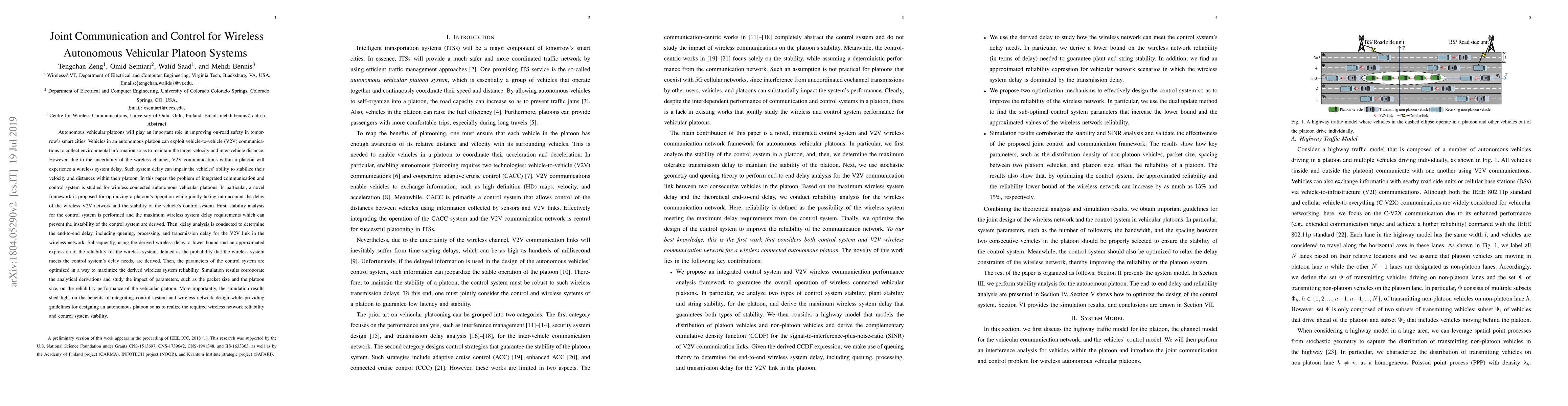 This paper proposes a framework to optimize the operation of autonomous vehicular platoons by jointly considering wireless communication delays and control system stability. It derives maximum delay requirements and analyzes the reliability of the wireless network, optimizing control parameters to enhance reliability, and demonstrates the benefits of integrated design through simulations.