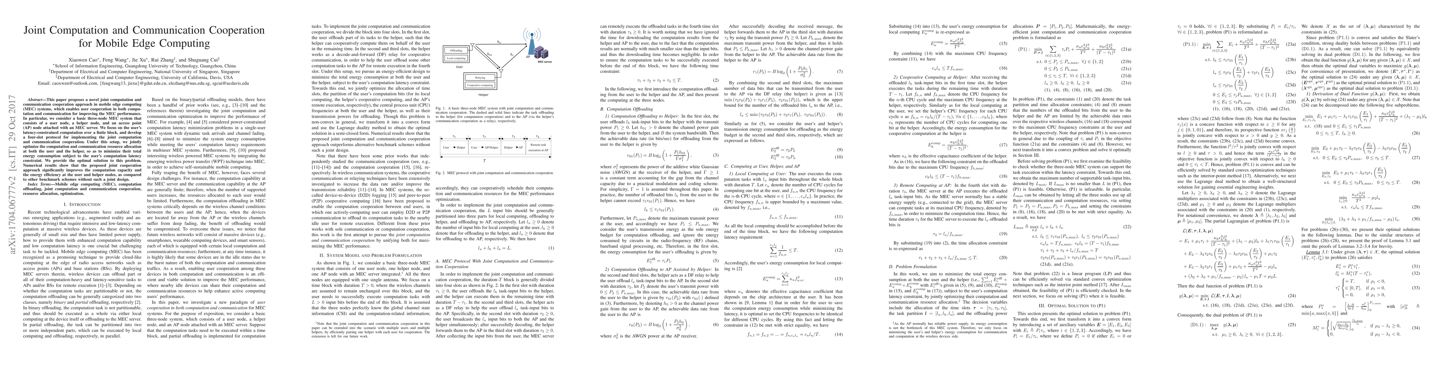 This paper introduces a joint computation and communication cooperation method in mobile edge computing systems, optimizing resource allocation to minimize energy consumption while meeting latency constraints. The proposed four-slot protocol significantly improves computation capacity and energy efficiency compared to non-cooperative schemes.