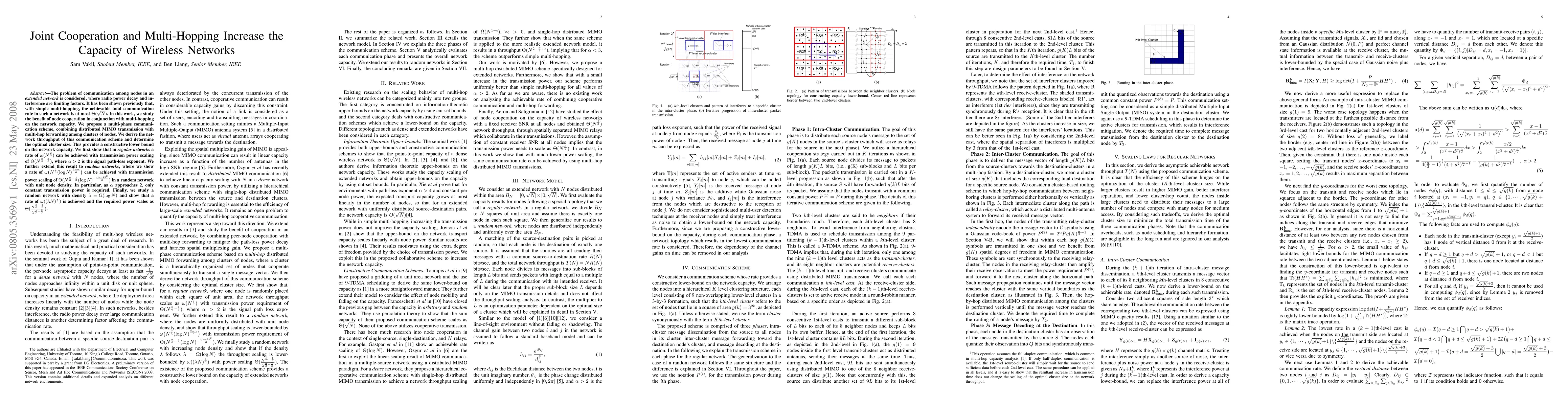The problem of communication among nodes in an \emph{extended network} is considered, where radio power decay and interference are limiting factors. It has been shown previously that, with simple multi-hopping, the achievable total communication rate in such a network is at most $\Theta(\sqrt{N})$. In this work, we study the benefit of node cooperation in conjunction with multi-hopping on the network capacity. We propose a multi-phase communication scheme, combining distributed MIMO transmission with multi-hop forwarding among clusters of nodes. We derive the network throughput of this communication scheme and determine the optimal cluster size. This provides a constructive lower bound on the network capacity. We first show that in \textit{regular networks} a rate of $\omega(N^{{2/3}})$ can be achieved with transmission power scaling of $\Theta(N^{\frac{\alpha}{6}-{1/3}})$, where $\alpha>2$ is the signal path-loss exponent. We further extend this result to \textit{random networks}, where we show a rate of $\omega (N^{2/3}(\log{N})^{(2-\alpha)/6})$ can be achieved with transmission power scaling of $\Theta(N^{\alpha/6-1/3}(\log{N})^{-(\alpha-2)^2/6})$ in a random network with unit node density. In particular, as $\alpha$ approaches 2, only constant transmission power is required. Finally, we study a random network with density $\lambda=\Omega(\log{N})$ and show that a rate of $\omega((\lambda N)^{2/3})$ is achieved and the required power scales as $\Theta(N^{\alpha/6-1/3}/\lambda^{\alpha/3-2/3})$.