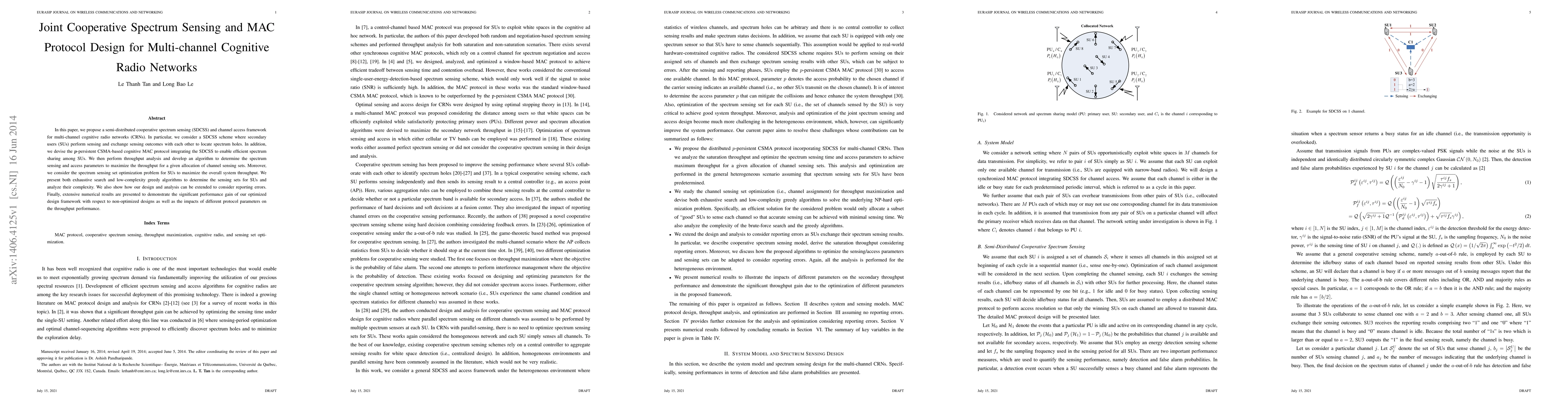 This paper proposes a semi-distributed cooperative spectrum sensing and a p-persistent CSMA-based MAC protocol for multi-channel cognitive radio networks, aiming to maximize throughput. It introduces algorithms for optimizing sensing sets and analyzing performance under reporting errors, demonstrating significant gains over non-optimized designs.