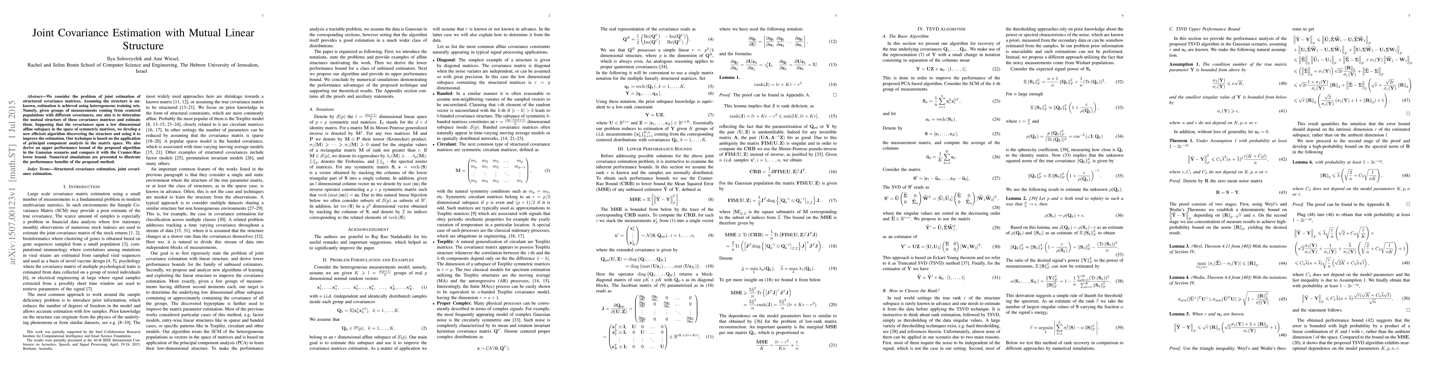We consider the problem of joint estimation of structured covariance matrices. Assuming the structure is unknown, estimation is achieved using heterogeneous training sets. Namely, given groups of measurements coming from centered populations with different covariances, our aim is to determine the mutual structure of these covariance matrices and estimate them. Supposing that the covariances span a low dimensional affine subspace in the space of symmetric matrices, we develop a new efficient algorithm discovering the structure and using it to improve the estimation. Our technique is based on the application of principal component analysis in the matrix space. We also derive an upper performance bound of the proposed algorithm in the Gaussian scenario and compare it with the Cramer-Rao lower bound. Numerical simulations are presented to illustrate the performance benefits of the proposed method.
