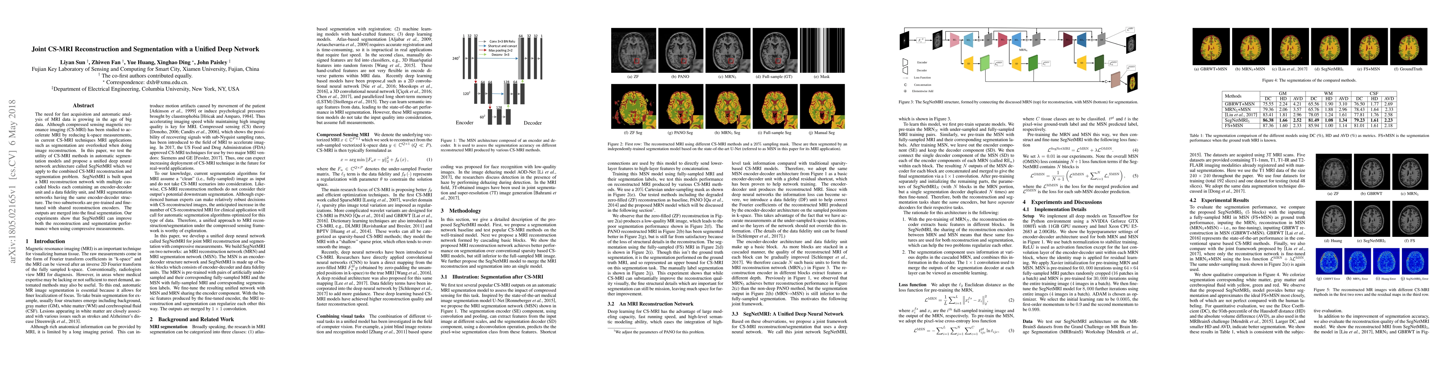 This paper proposes a unified deep neural network, SegNetMRI, for joint compressed sensing MRI reconstruction and segmentation. The network combines reconstruction and segmentation subnetworks, pre-trained and fine-tuned with shared encoders, to enhance both tasks simultaneously.