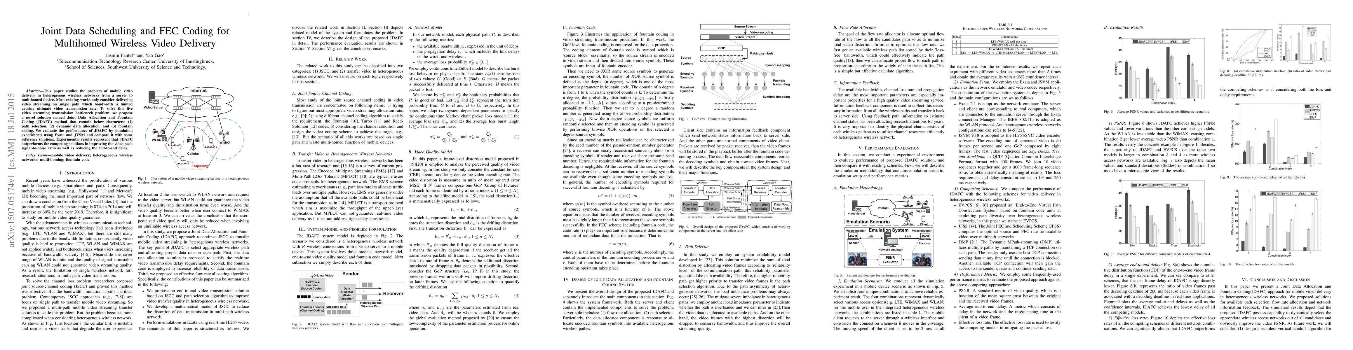 This paper studies the problem of mobile video delivery in heterogenous wireless networks from a server to multihomed device. Most existing works only consider delivering video streaming on single path which bandwidth is limited causing ultimate video transmission rate. To solve this live video streaming transmission bottleneck problem, we propose a novel solution named Joint Data Allocation and Fountain Coding (JDAFC) method that contain below characters: (1) path selection, (2) dynamic data allocation, and (3) fountain coding. We evaluate the performance of JDAFC by simulation experiments using Exata and JVSM and compare it with some reference solutions. Experimental results represent that JDAFC outperforms the competing solutions in improving the video peak signal-to-noise ratio as well as reducing the end-to-end delay.