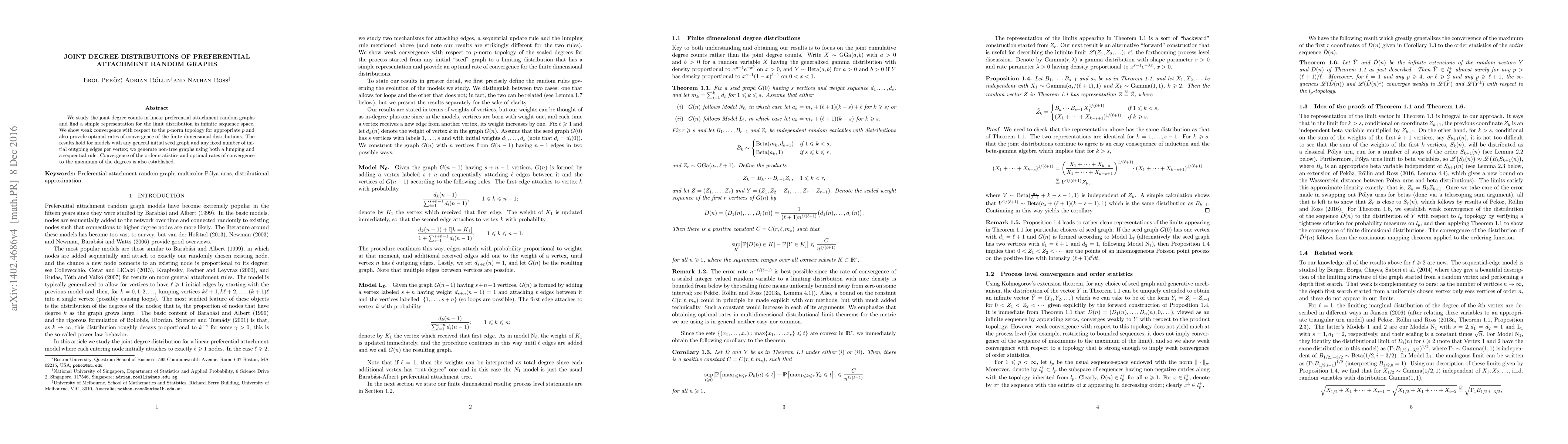We study the joint degree counts in proportional attachment random graphs and find a simple representation for the limit distribution in infinite sequence space. We show weak convergence with respect to the p-norm topology for appropriate p and also provide optimal rates of convergence of the finite dimensional distributions. The results hold for models with any general initial seed graph and any fixed number of initial outgoing edges per vertex; we generate non-tree graphs using both a lumping and a sequential rule. Convergence of the order statistics and optimal rates of convergence to the maximum of the degrees is also established.