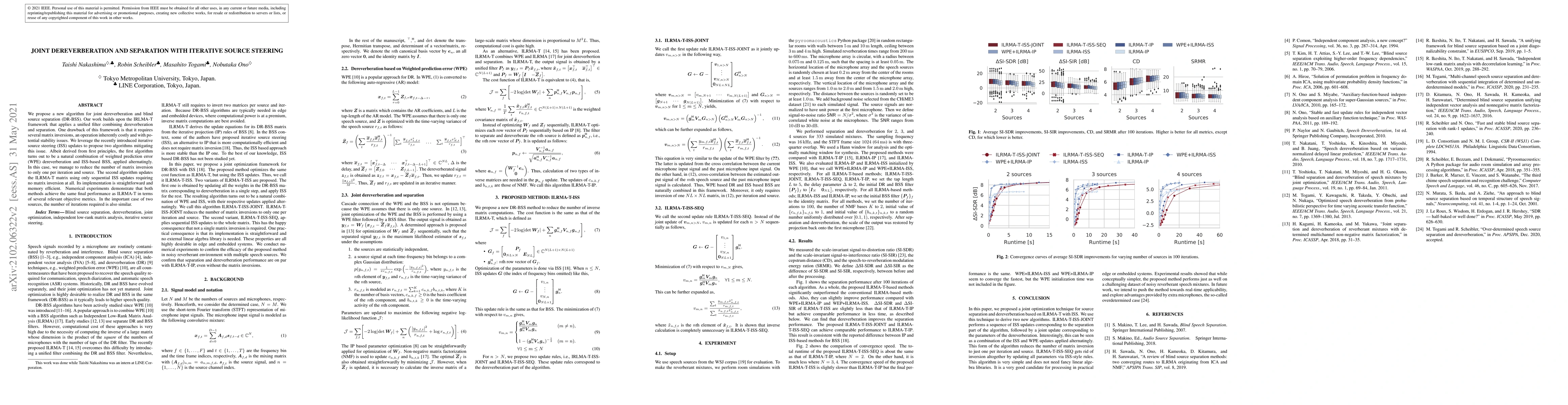 This paper proposes two new algorithms for joint dereverberation and blind source separation, leveraging iterative source steering to reduce computational costs and matrix inversions. Both methods achieve comparable performance to the ILRMA-T framework while being more efficient and stable.