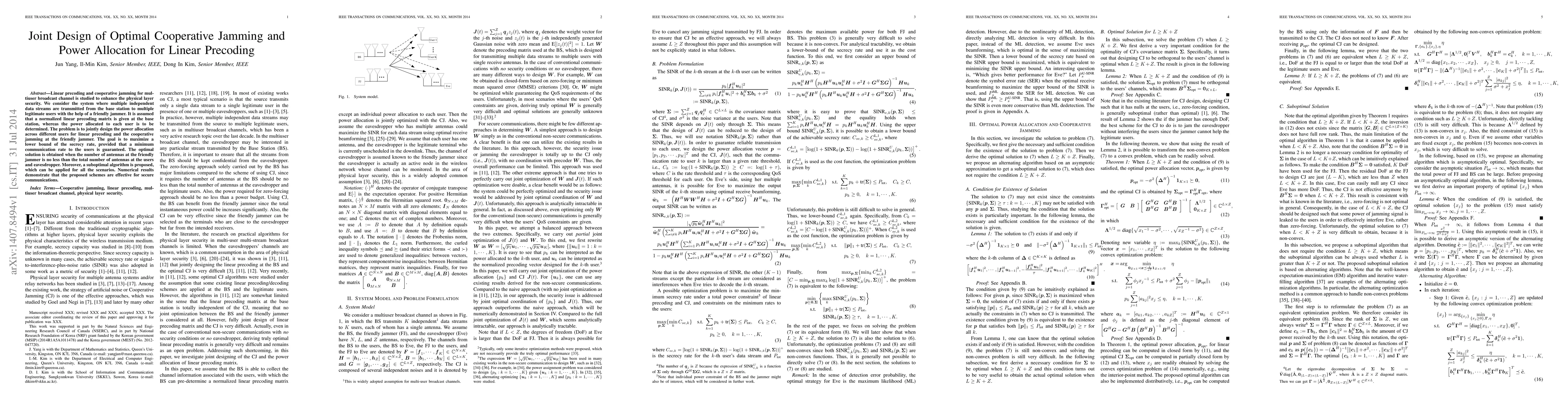 The paper presents an optimal solution and a suboptimal algorithm for joint power allocation and cooperative jamming design, along with proofs of their optimality and suboptimality.