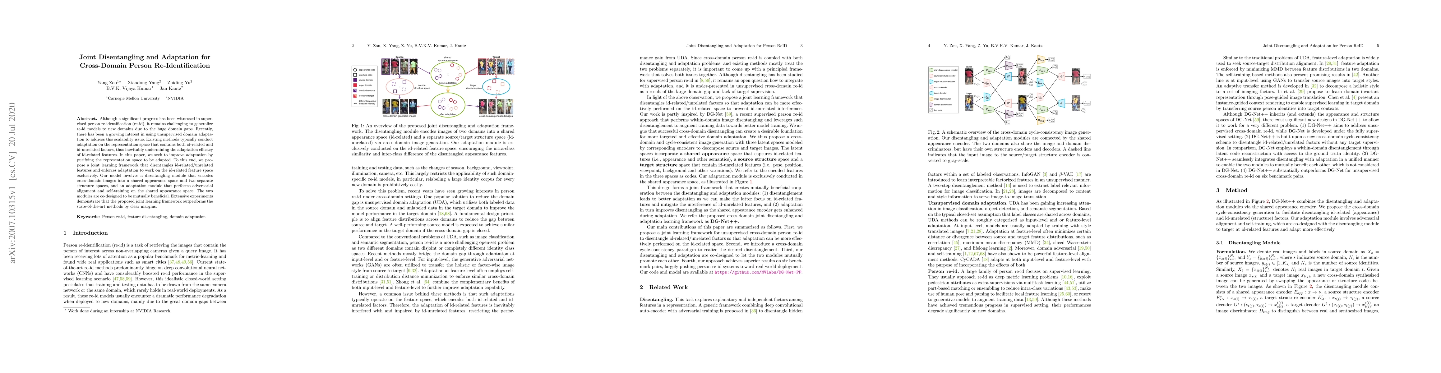 This paper proposes a joint learning framework for unsupervised domain adaptation in person re-identification, which disentangles id-related and id-unrelated features to enhance adaptation efficacy. The framework includes a disentangling module and an adaptation module that work synergistically to improve cross-domain performance.