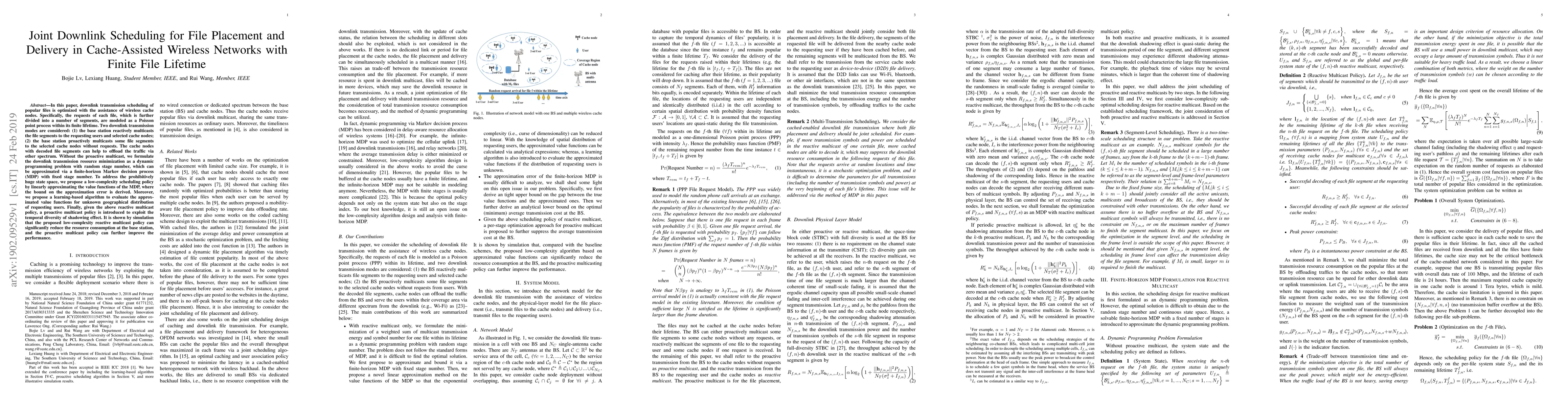 In this paper, downlink transmission scheduling of popular files is optimized with the assistance of wireless cache nodes. Specifically, the requests of each file, which is further divided into a number of segments, are modeled as a Poisson point process within its finite lifetime. Two downlink transmission modes are considered: (1) the base station reactively multicasts the file segments to the requesting users and selected cache nodes; (2) the base station proactively multicasts some file segments to the selected cache nodes without requests. The cache nodes with decoded file segments can help to offload the traffic via other spectrum. Without the proactive multicast, we formulate the downlink transmission resource minimization as a dynamic programming problem with random stage number, which can be approximated via a finite-horizon Markov decision process (MDP) with fixed stage number. To address the prohibitively huge state space, we propose a low-complexity scheduling policy by linearly approximating the value functions of the MDP, where the bound on the approximation error is derived. Moreover, we propose a learning-based algorithm to evaluate the approximated value functions for unknown geographical distribution of requesting users. Finally, given the above reactive multicast policy, a proactive multicast policy is introduced to exploit the temporal diversity of shadowing effect. It is shown by simulation that the proposed low-complexity reactive multicast policy can significantly reduce the resource consumption at the base station, and the proactive multicast policy can further improve the performance.