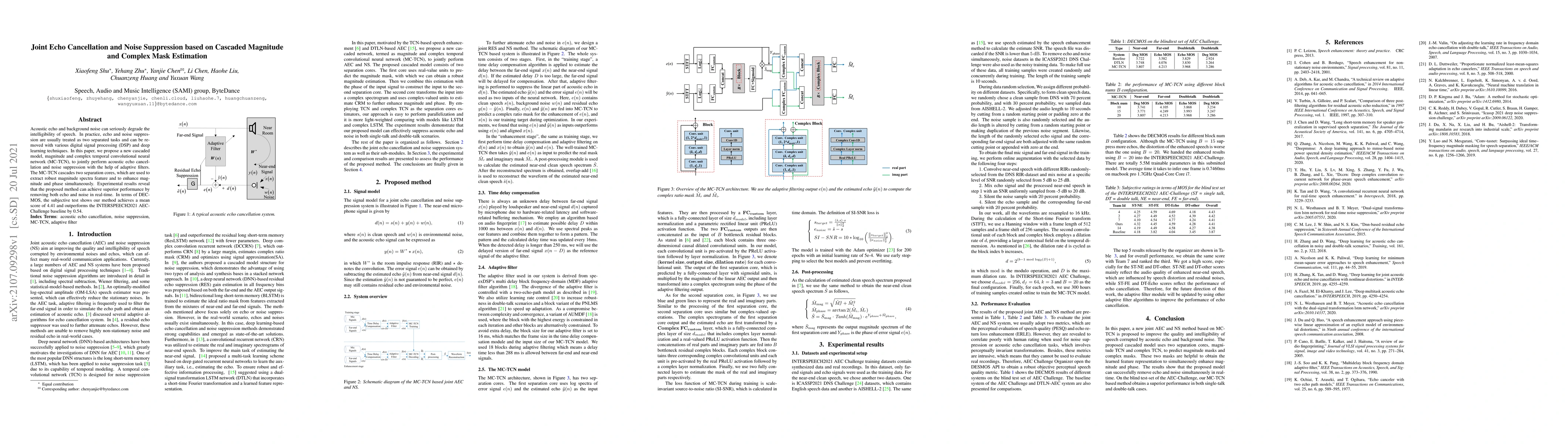 This paper proposes a new MC-TCN model for joint acoustic echo cancellation and noise suppression, achieving superior performance over existing methods. The MC-TCN model combines magnitude and phase feature extraction to effectively remove both echo and noise in real-time, outperforming the INTERSPEECH2021 AEC-Challenge baseline.