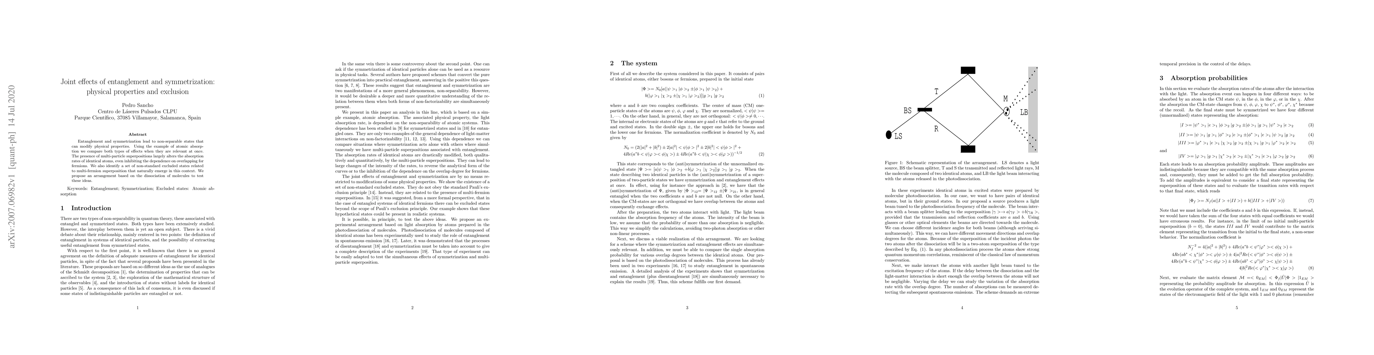 This paper explores the combined effects of entanglement and symmetrization on physical properties, demonstrating how they can alter atomic absorption rates and inhibit the usual dependence on overlapping for fermions. It identifies non-standard excluded states arising from multi-fermion superpositions and proposes a molecular dissociation test to validate these findings.