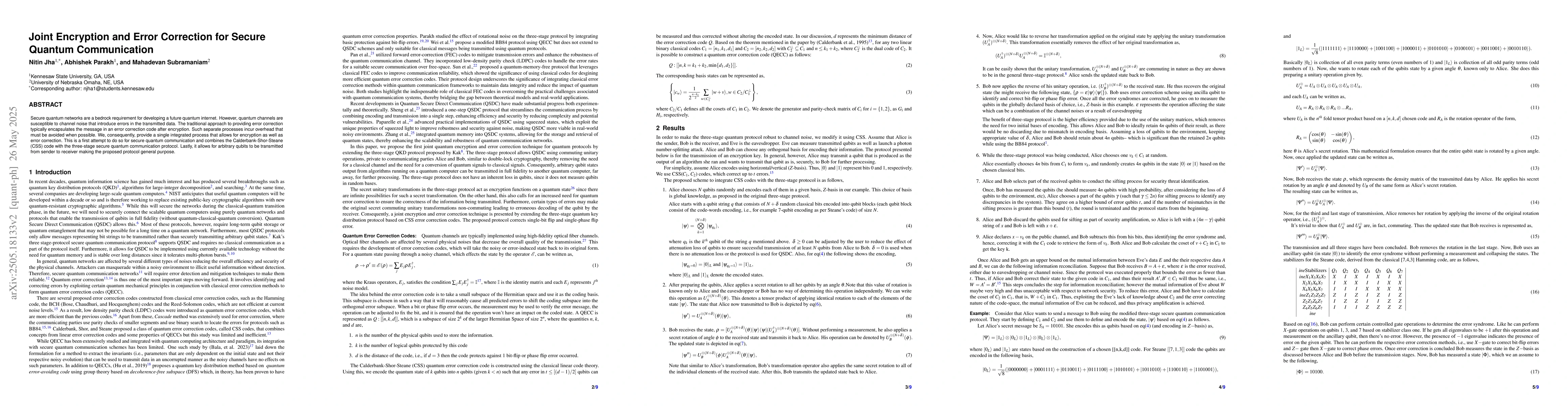 Researchers developed a new protocol that integrates encryption and error correction for secure quantum communication, combining CSS code with a three-stage secure quantum communication protocol to enable general-purpose transmission of arbitrary qubits.