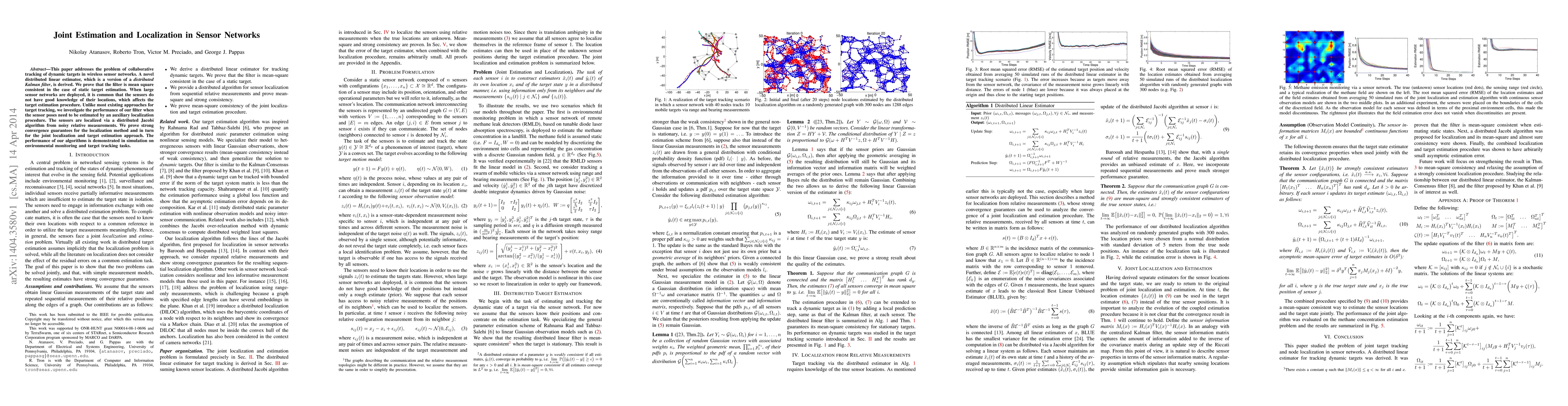 This paper proposes a novel distributed linear estimator for collaborative tracking of dynamic targets in wireless sensor networks, incorporating a distributed Kalman filter. It also introduces a distributed Jacobi algorithm for sensor localization, proving strong convergence guarantees for both localization and joint localization-estimation, and demonstrates performance through simulations in environmental monitoring and target tracking.