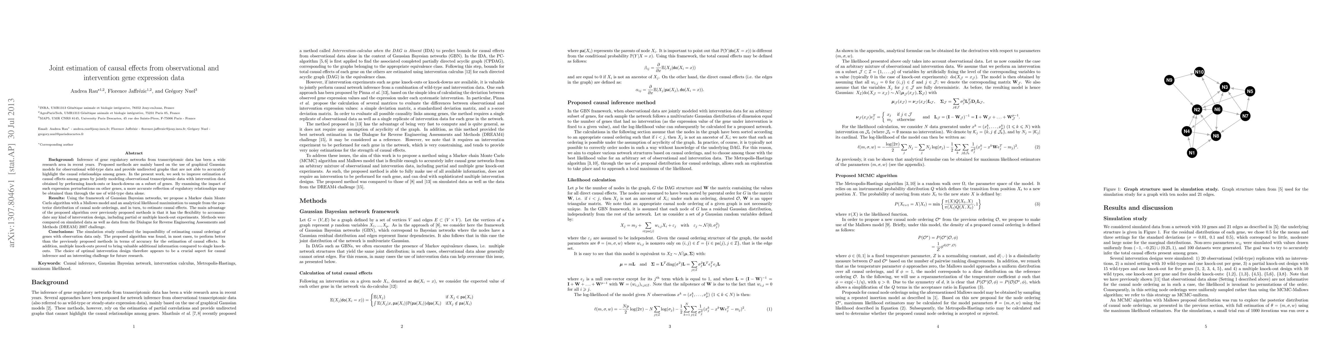 This paper proposes a novel method to estimate causal effects among genes by integrating observational and intervention gene expression data. The method uses a Gaussian Bayesian network framework and a Markov chain Monte Carlo algorithm to better capture causal relationships compared to observational data alone, especially when incorporating multiple knock-out experiments. The proposed approach outperforms existing methods in estimating causal effects, highlighting the importance of optimal intervention design for accurate causal inference.